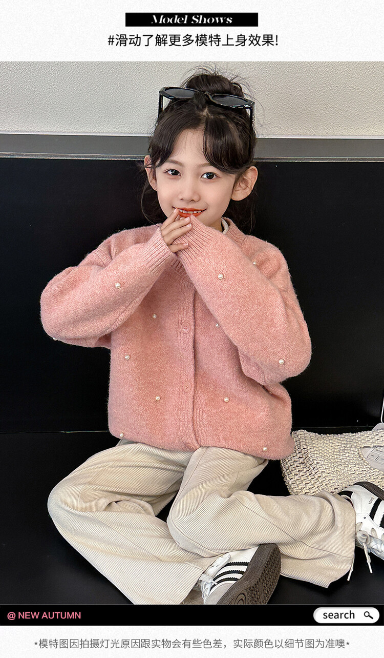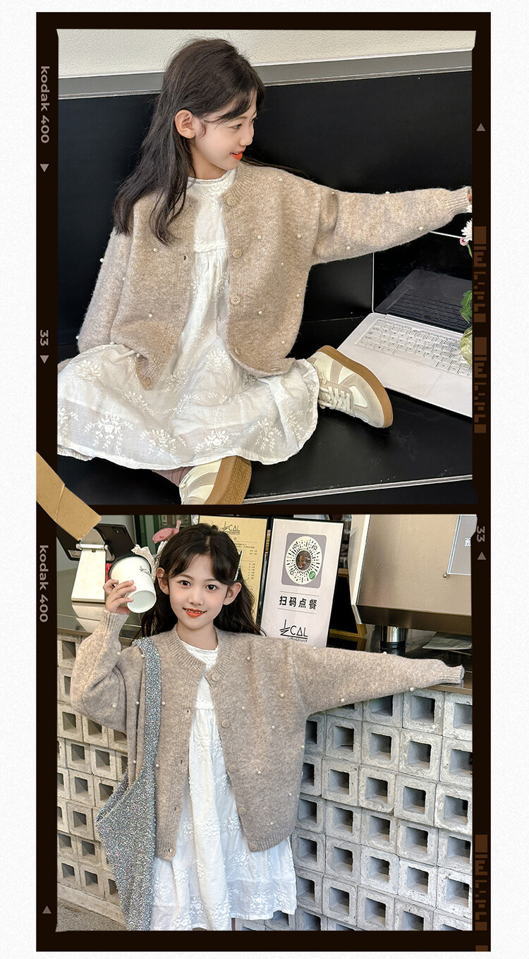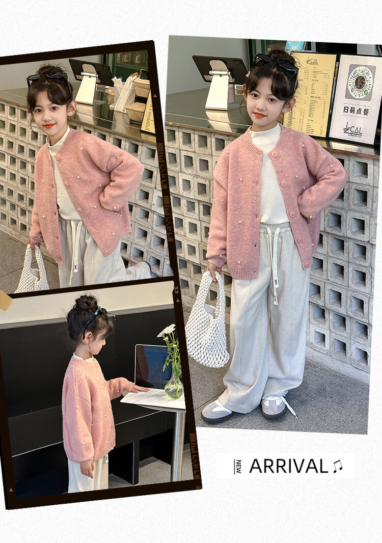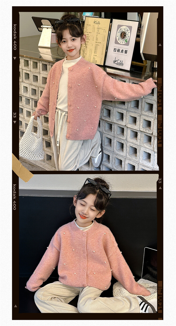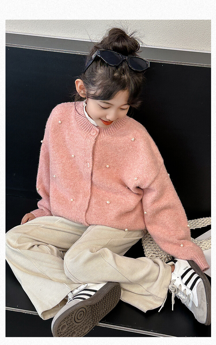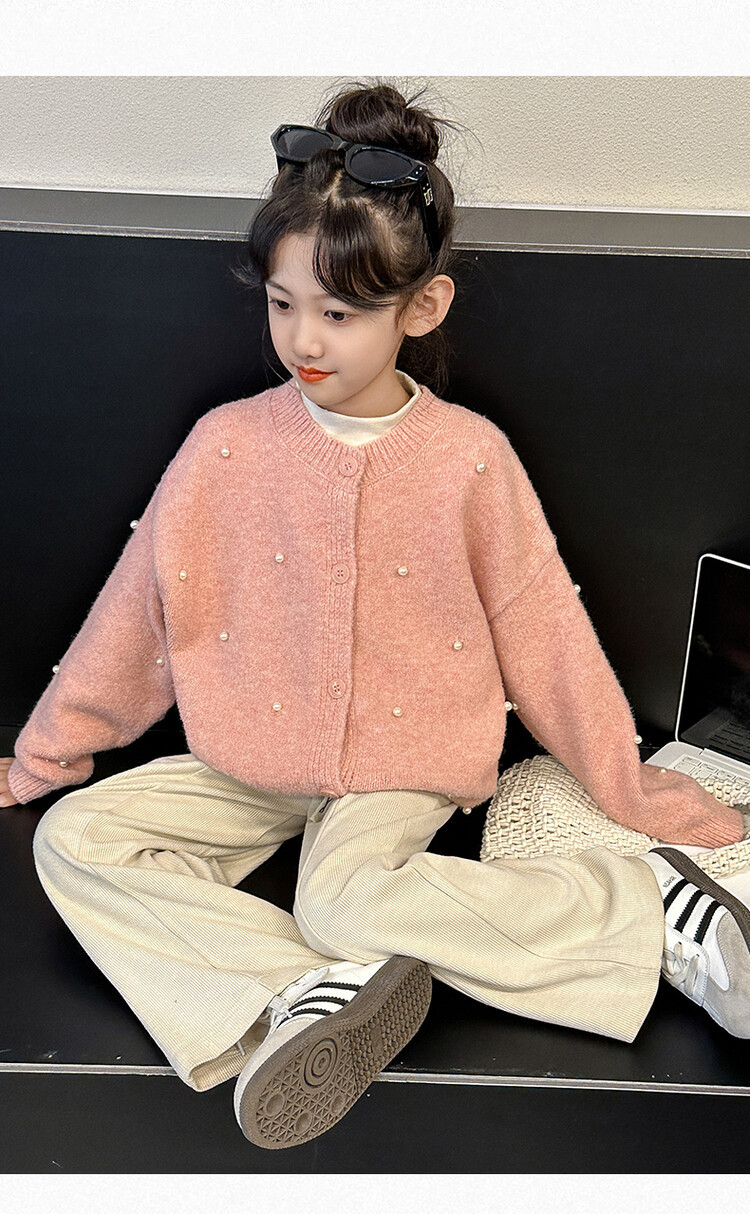 소녀 스웨터 코트 가을 2024 새로운 스타일 어린이 소녀 니트 카디건 탑 봄과 가을 중 큰 아이들스토어 가기
