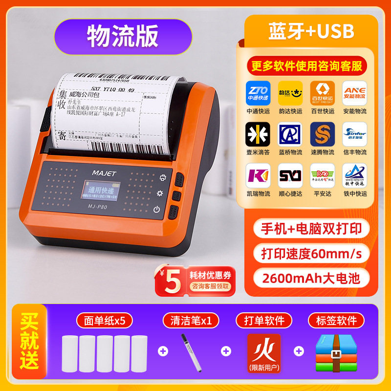 코드 제트 P80 휴대용 프린터 유니버설 서클 Shentong Yunda Baishi 블루투스 열 익스프레스 단일 기계