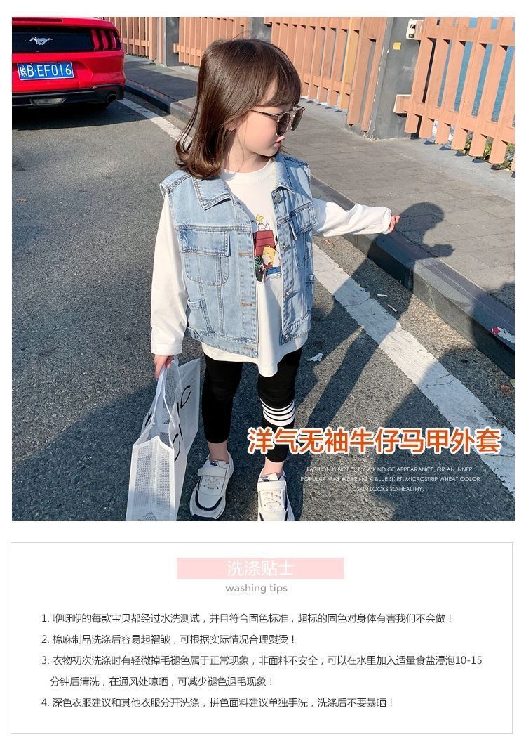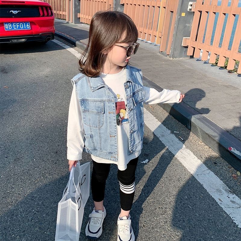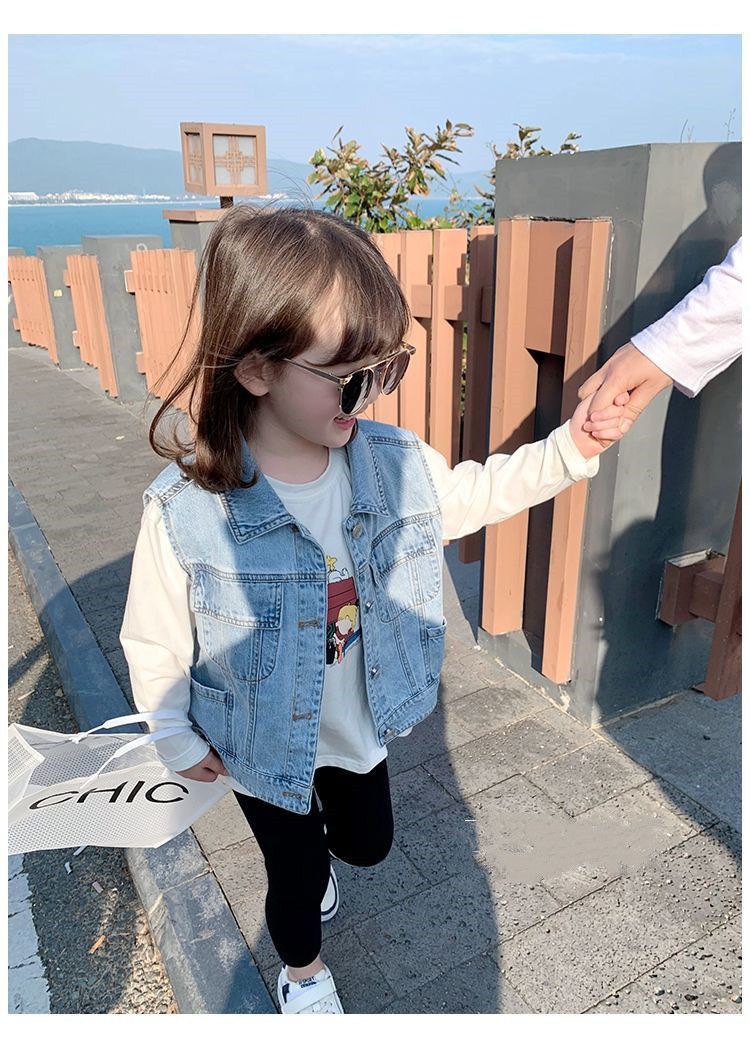 소녀 데님 조끼 2024 봄 새로운 어린이 아기의 서양식 외부 조끼를 입고 조끼 어깨 허리 코트 패션 봄과 가을