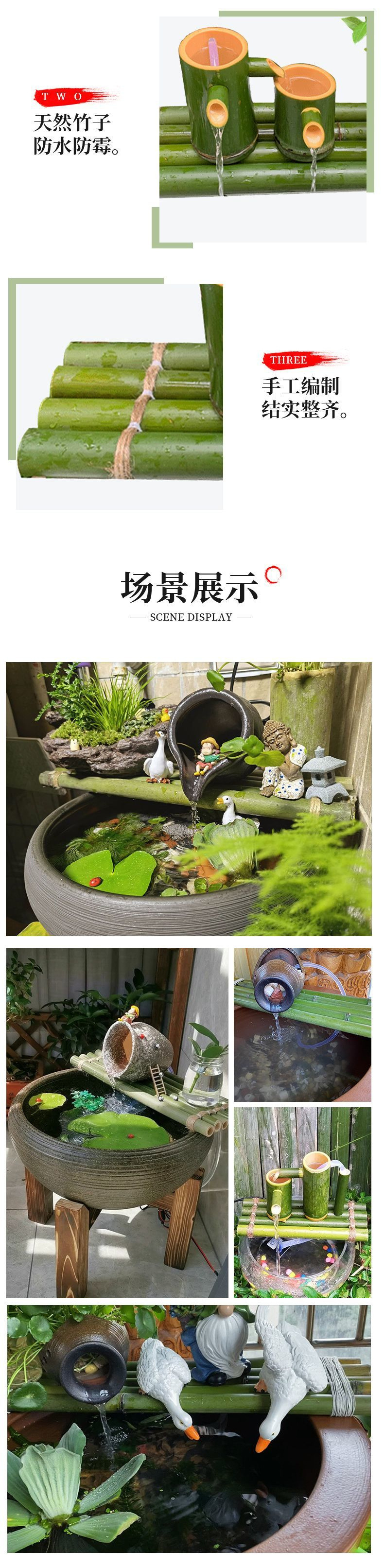 달리는 물 장식품 생선 탱크 수제 대나무 줄 대나무 매트 코트야드 발코니 다육 분재 DIY 장식 고대 방법 탱크 보드 뜨거운 판매스토어 가기