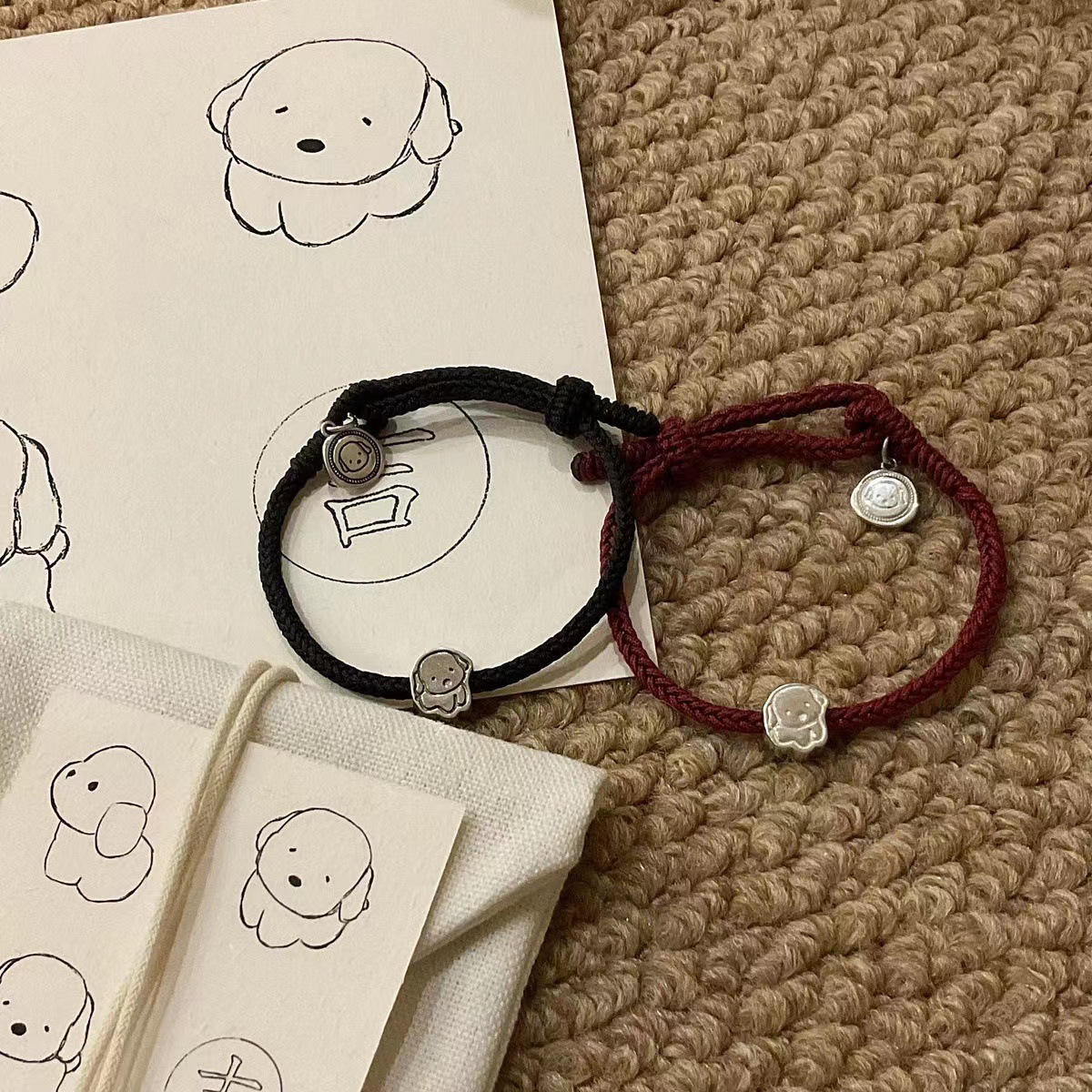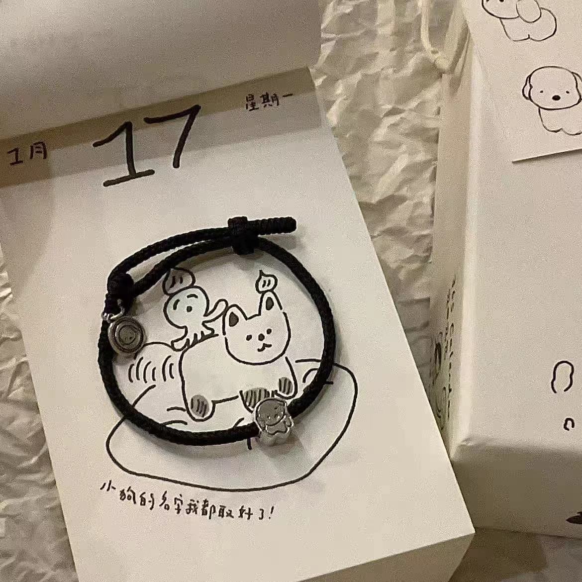 길조 강아지 브랜드 핸드 로프 완성 된 바람 작은 고무 텐든 조정 가능한 크기 귀여운 올 매치 커플 팔찌