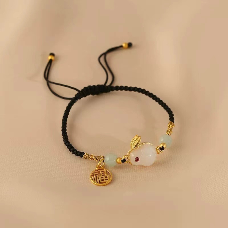 • 천연 마노 호탄 옥 토끼 팔찌