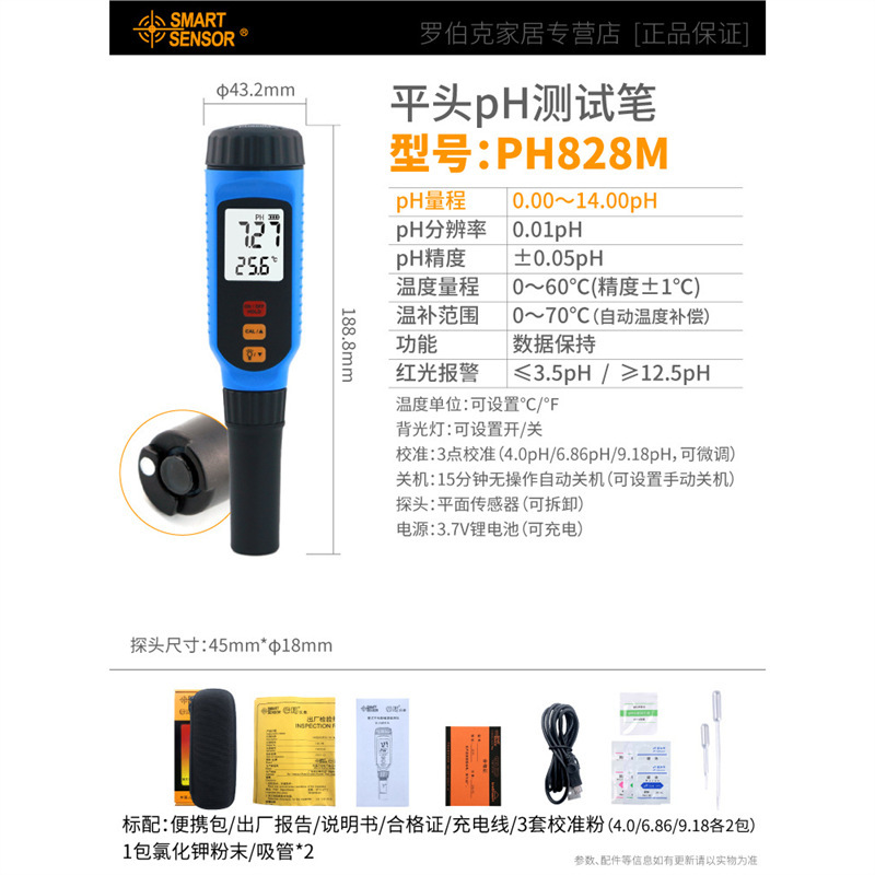Xima ph828 산업용 ph pH 테스터 pH 미터 어항 수질 탐지기 휴대용스토어 가기