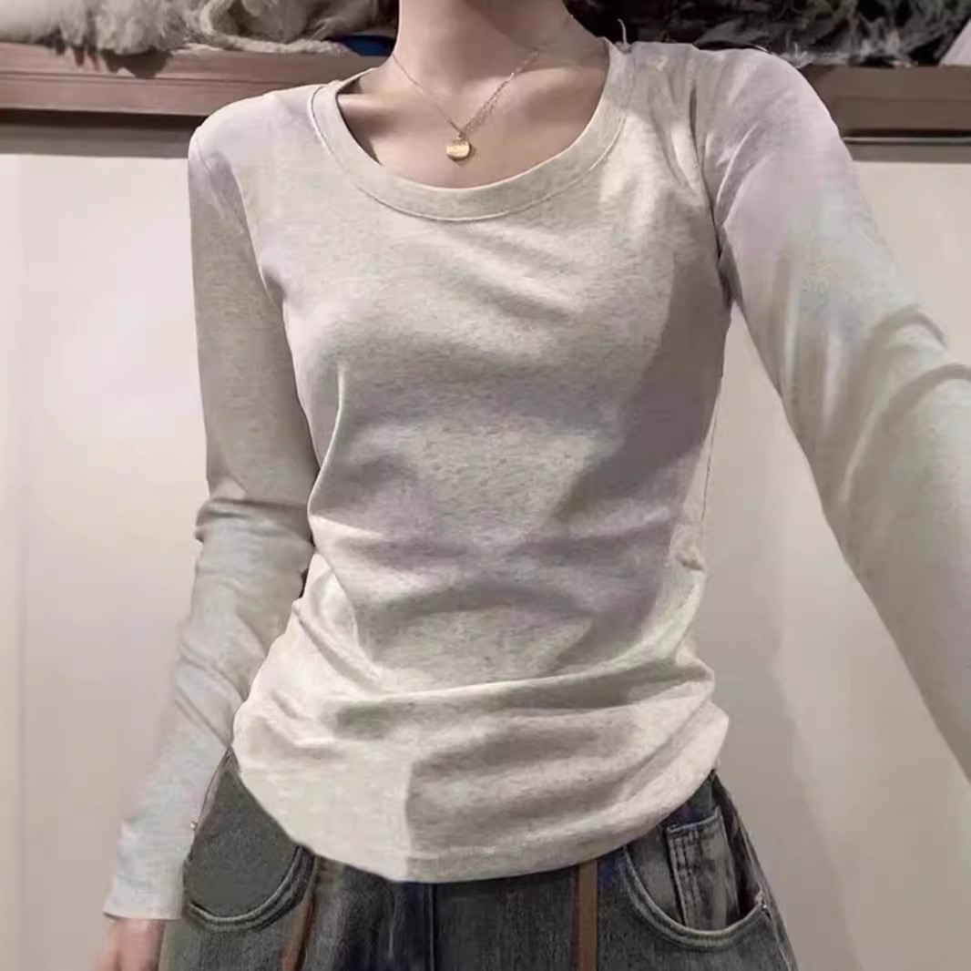 코튼 화이트 내베이스 셔츠 긴 소매 티셔츠 여성의 가을과 겨울 두꺼운 슬림 어깨 조커 탑 도매