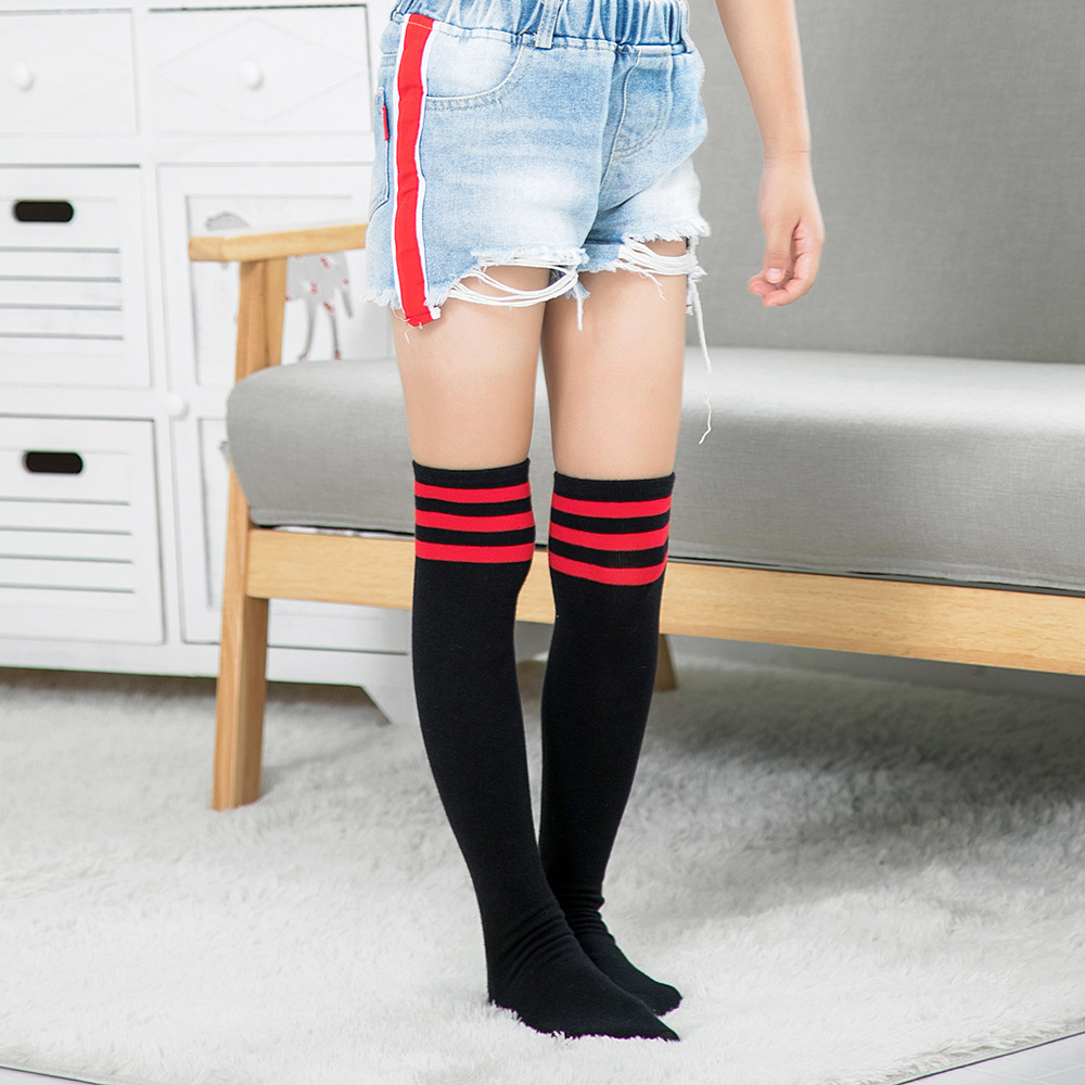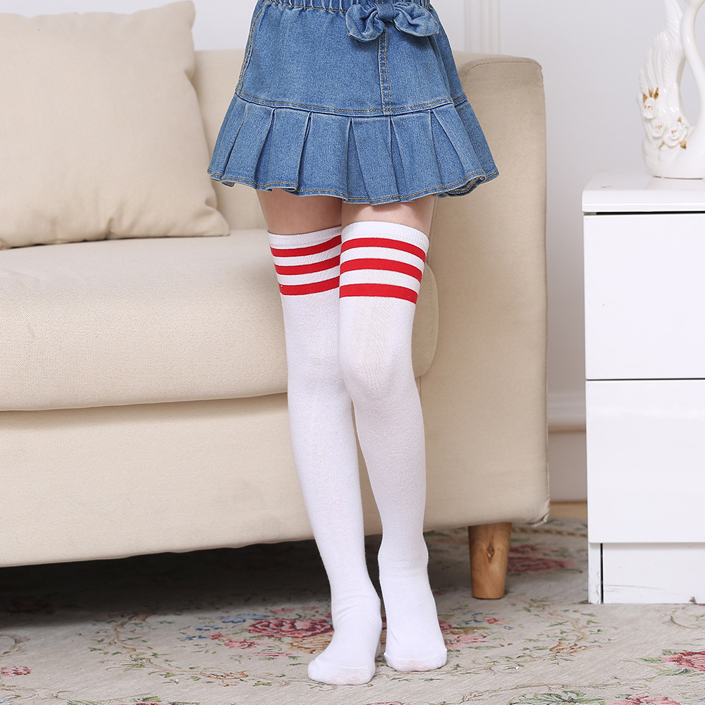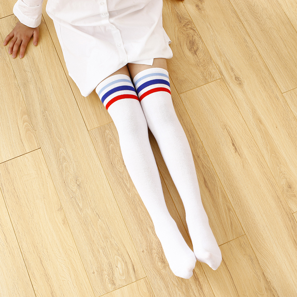 어린이 3 바 오버 더 무릎 양말 긴 양말 여자 대학 스타일 흰색 축구 양말 봄과 가을
