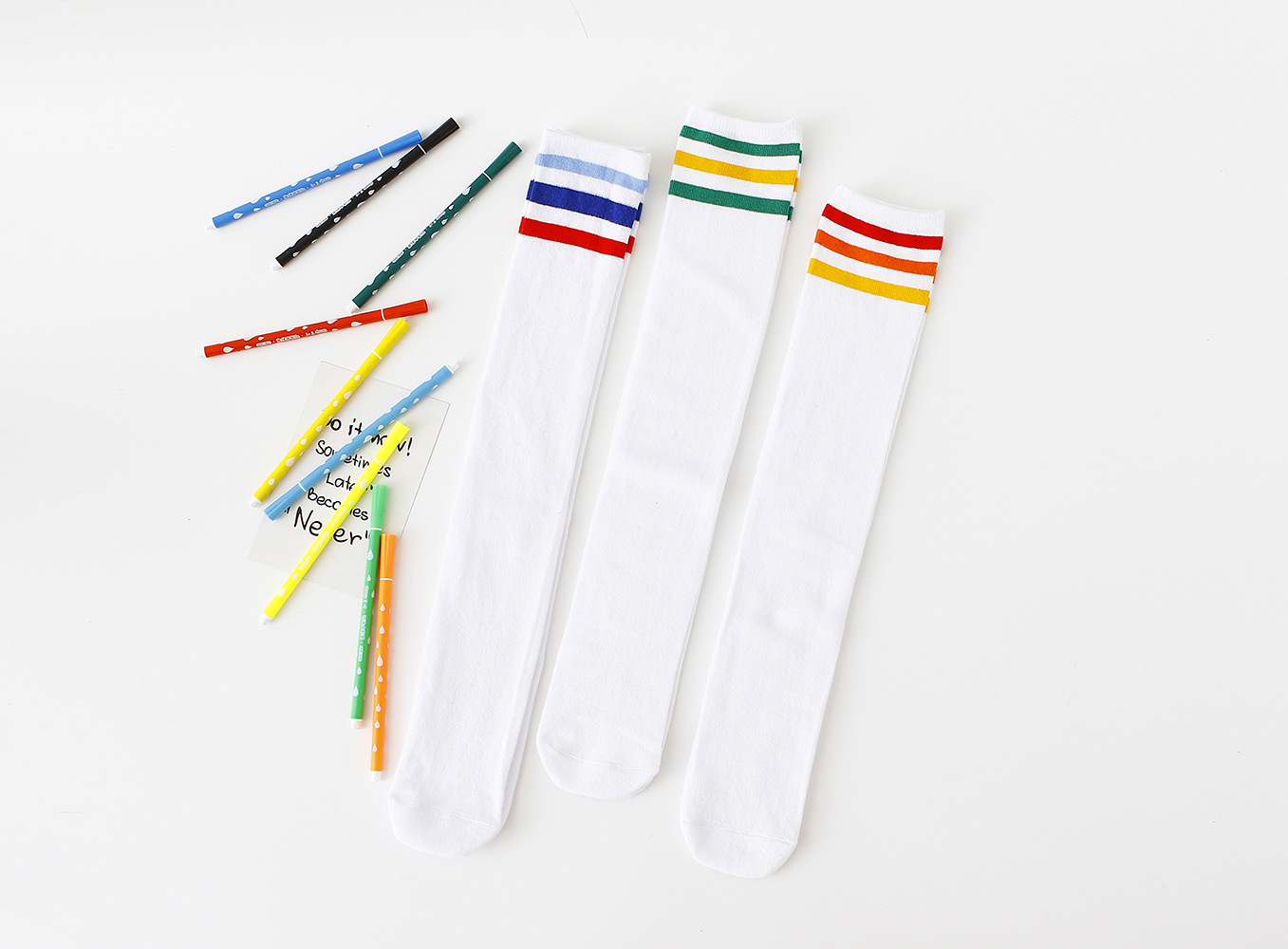 어린이 3 바 오버 더 무릎 양말 긴 양말 여자 대학 스타일 흰색 축구 양말 봄과 가을스토어 가기