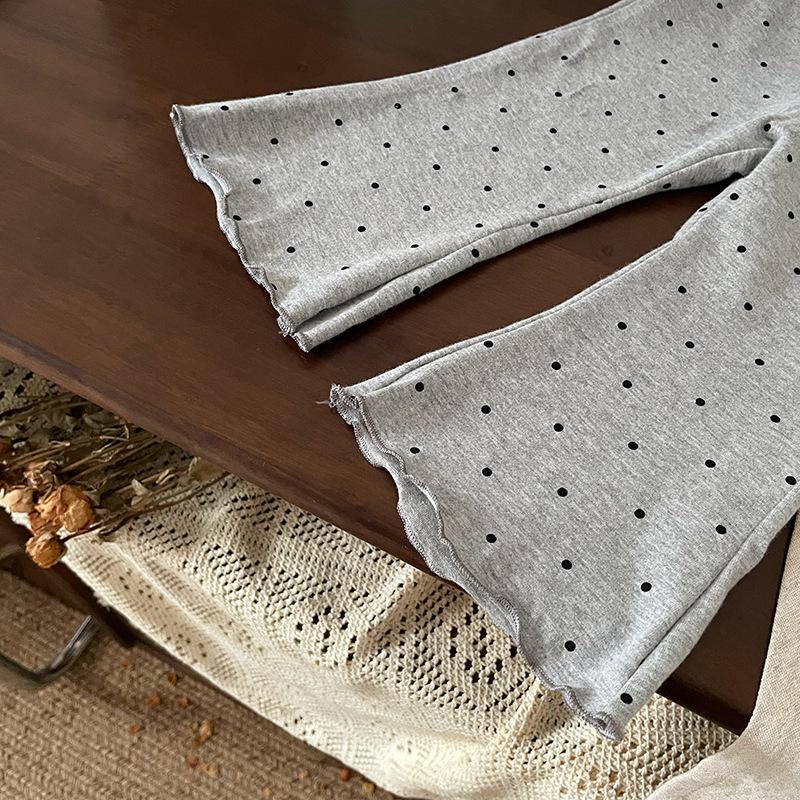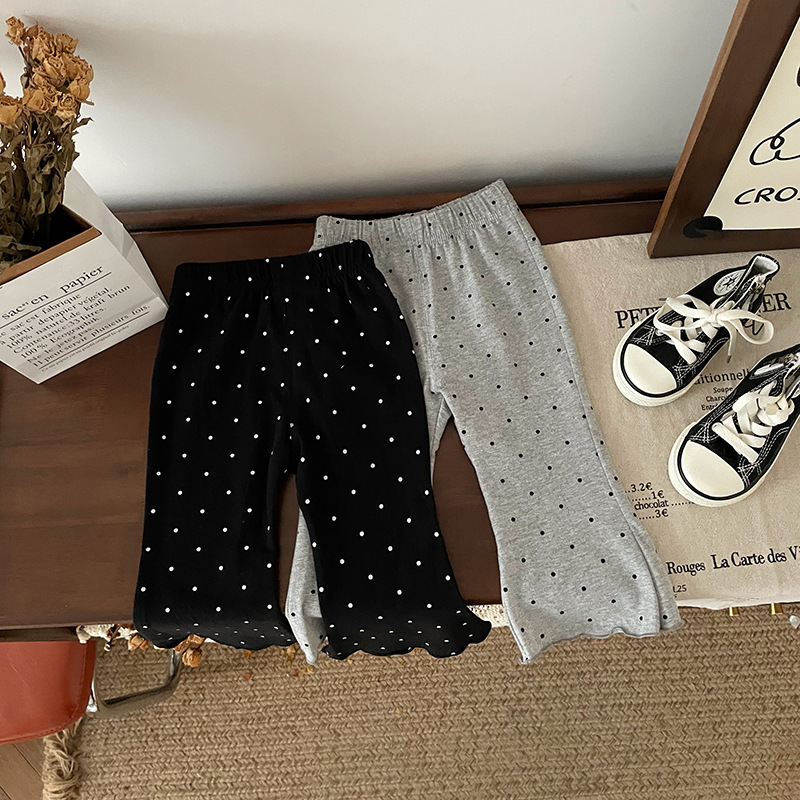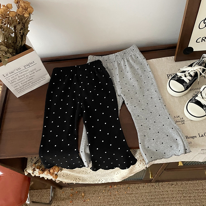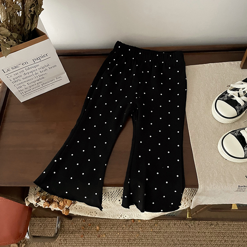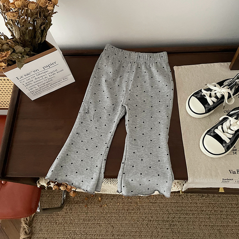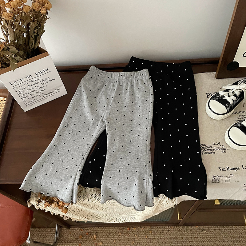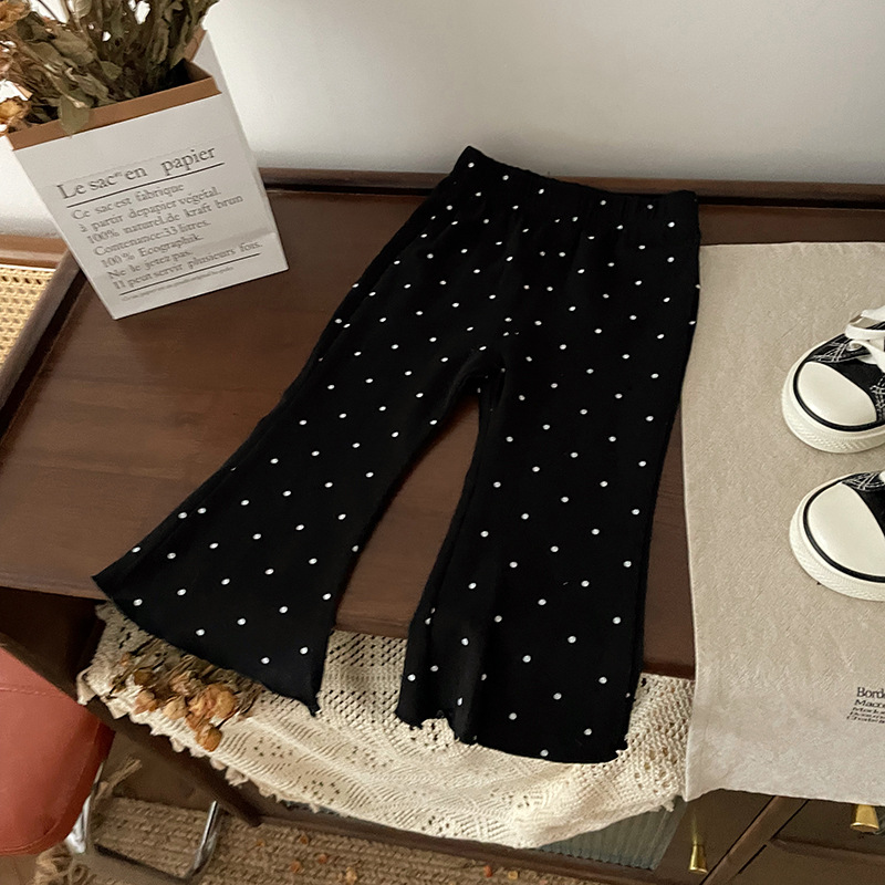 【재고 있음】QK241205 아동용 바지 2025 봄 가을 신상 플레어 팬츠 물방울 무늬 캐주얼 바지스토어 가기