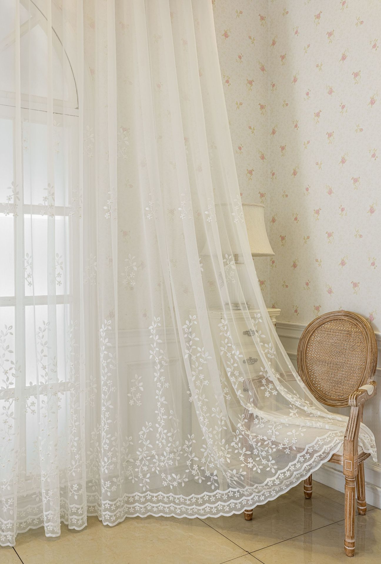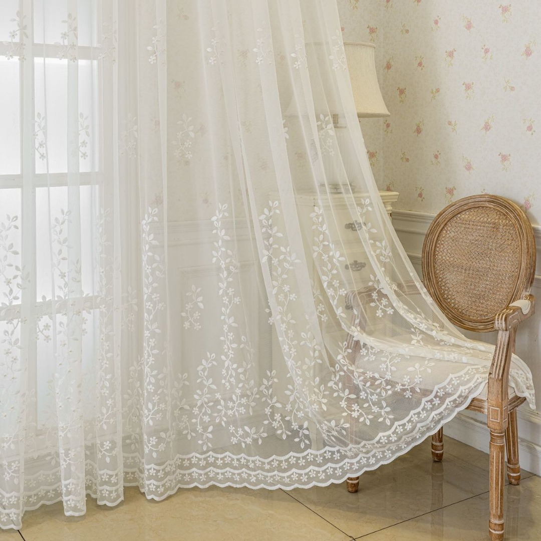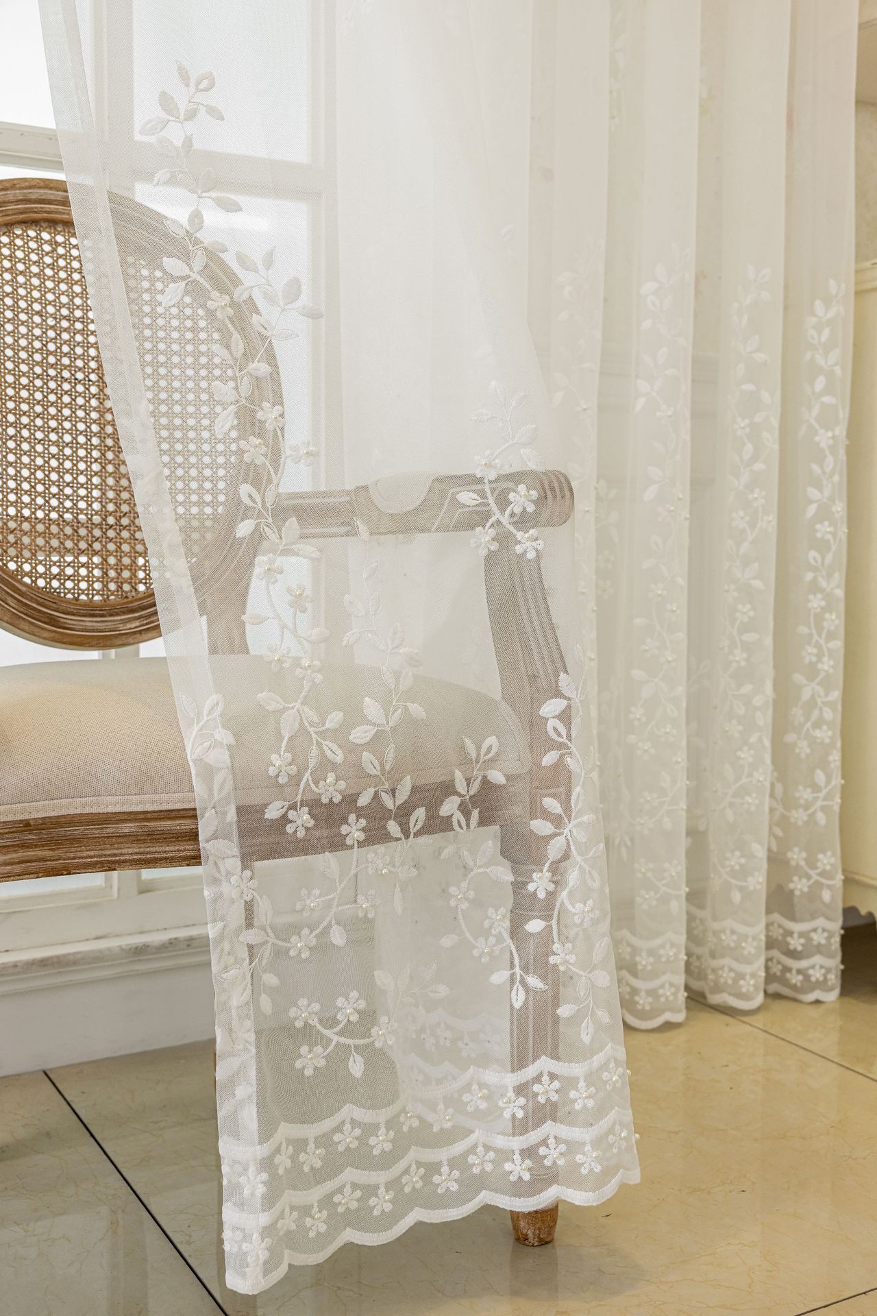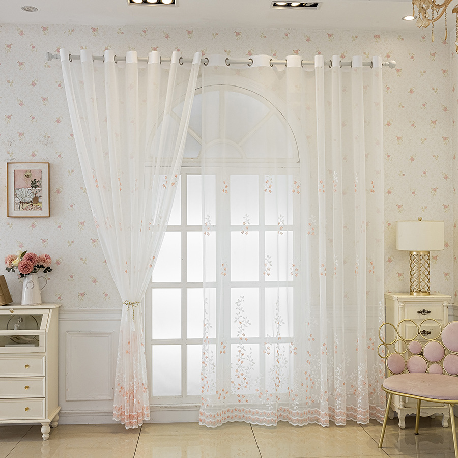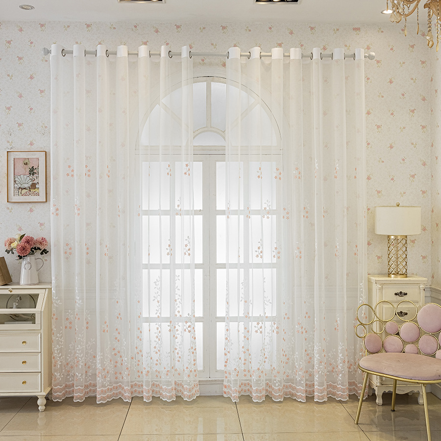 현대 간단한 수제 구슬 자수 투명 커튼 창 화면 침실 발코니 마감 거즈 커튼 국경 아마존스토어 가기
