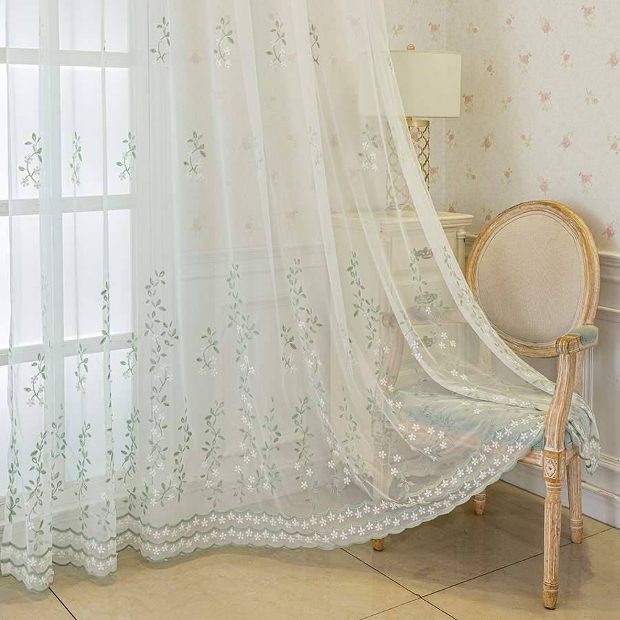 현대 간단한 수제 구슬 자수 투명 커튼 창 화면 침실 발코니 마감 거즈 커튼 국경 아마존