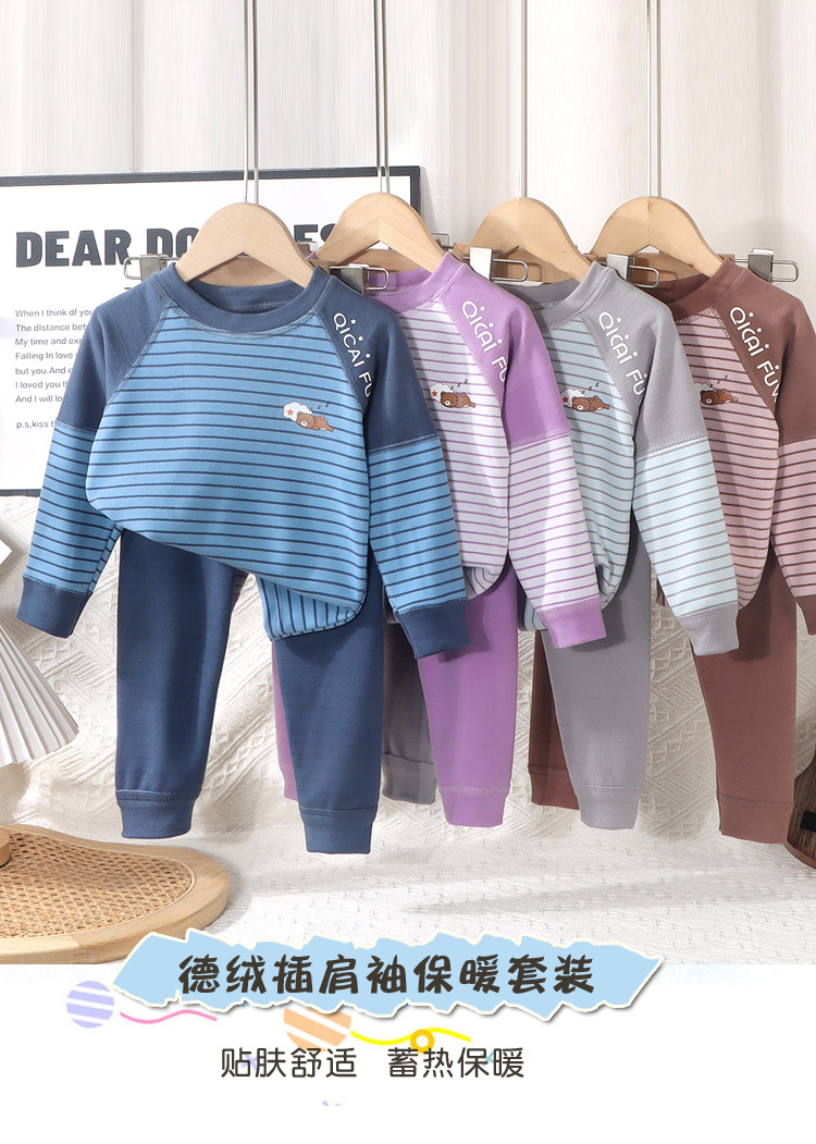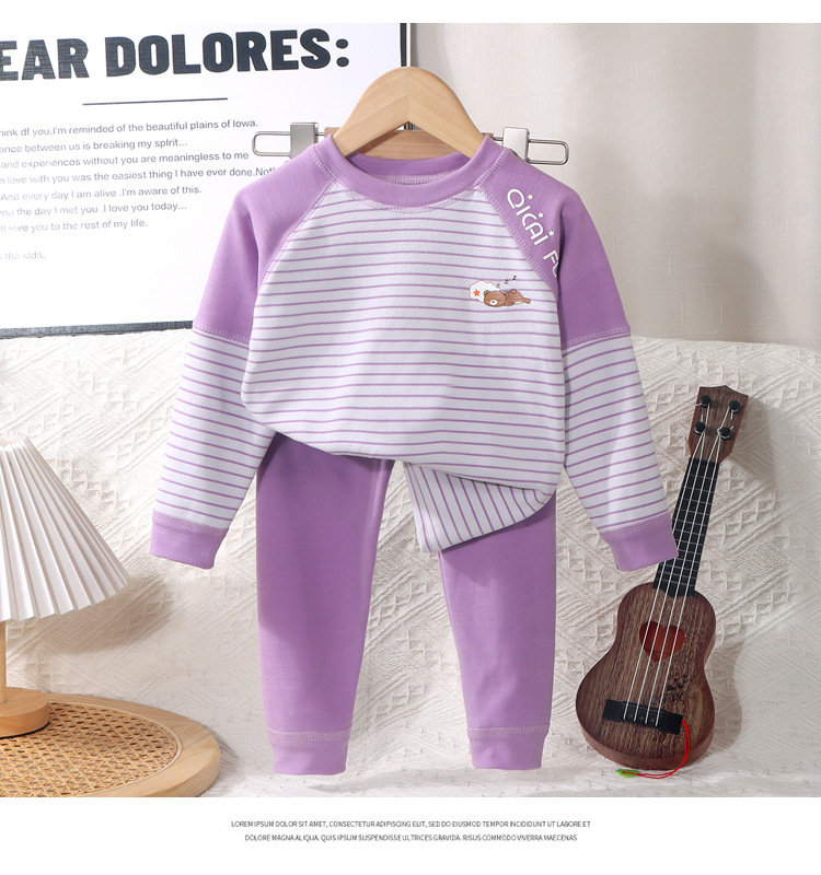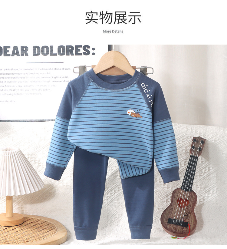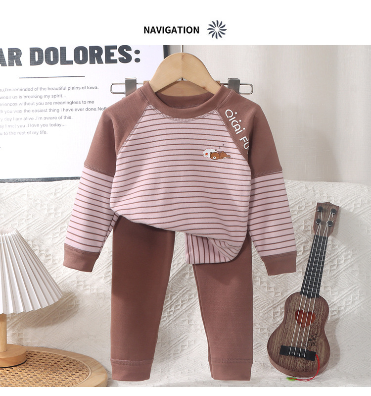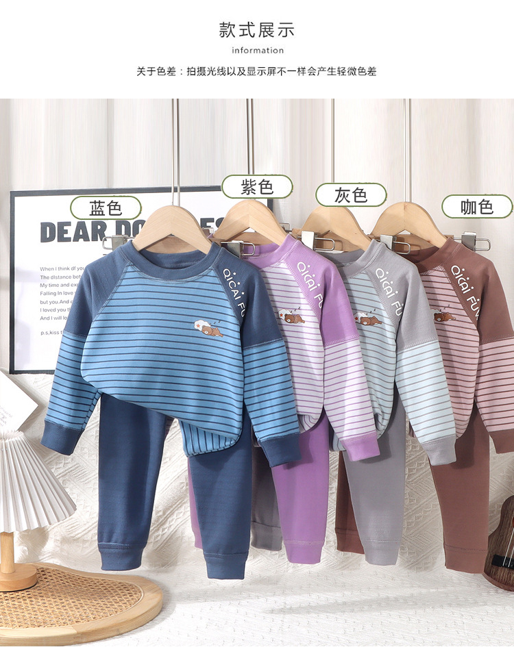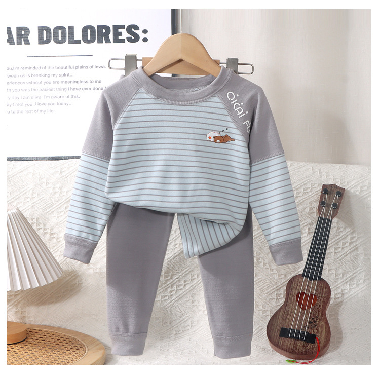 어린이 열 속옷 세트 소년 소녀들의 두꺼운 가을 옷과 가을 바지 뼈없는 줄무늬 파자마 큰 어린이 가정 옷스토어 가기
