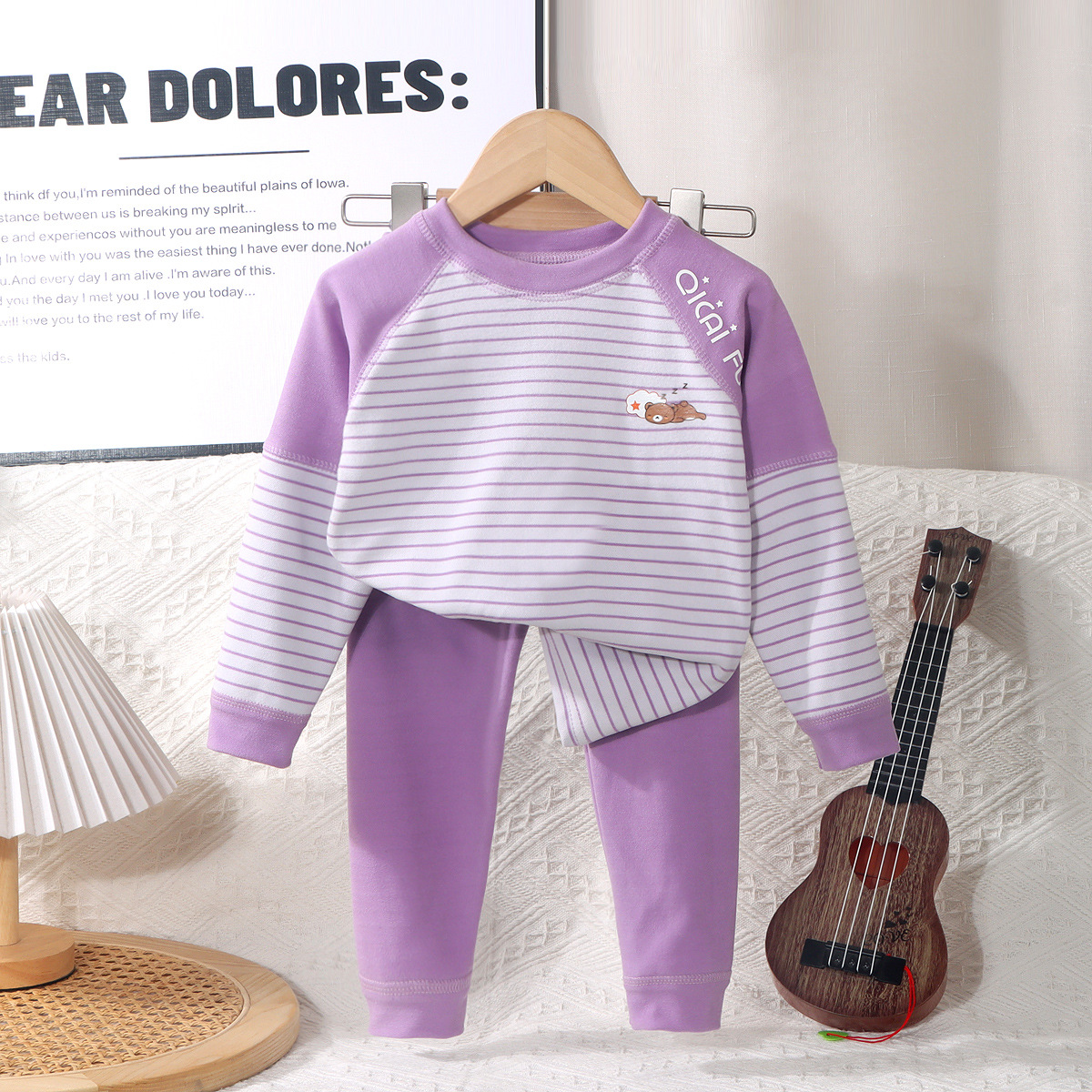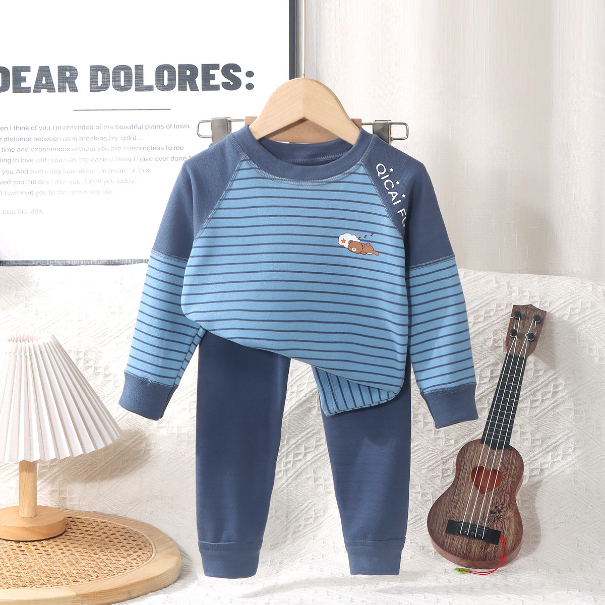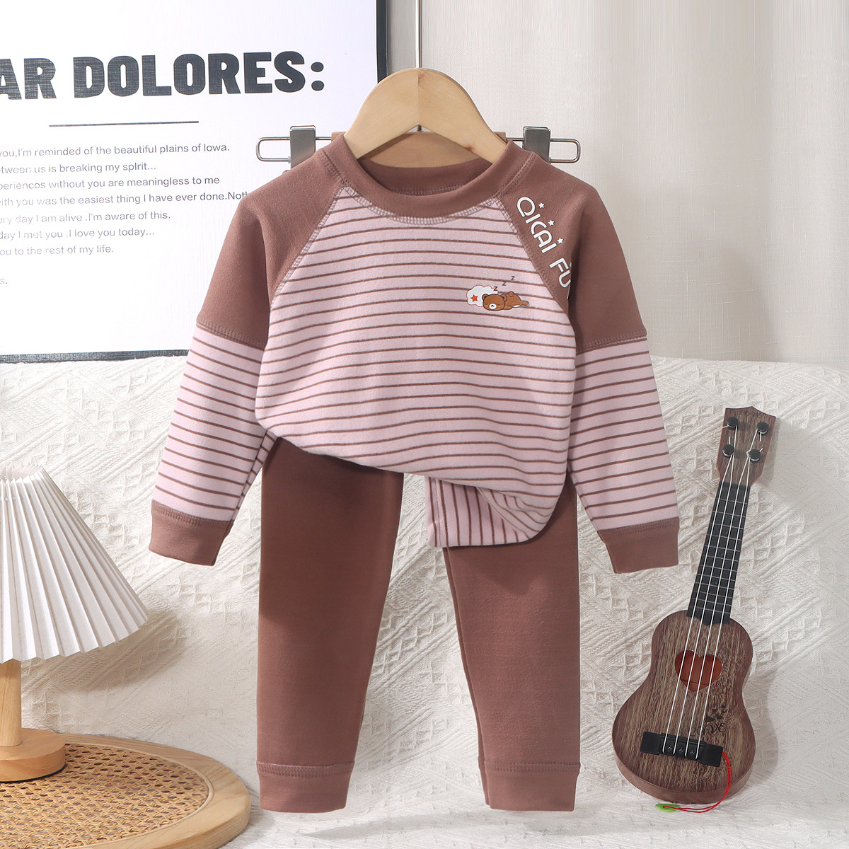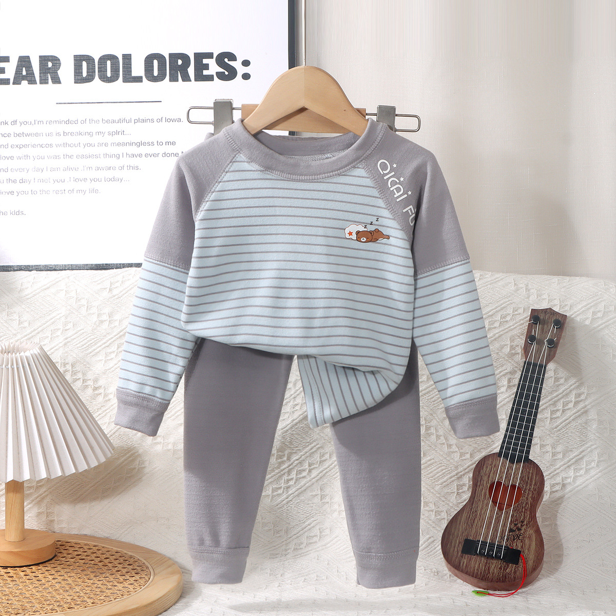 어린이 열 속옷 세트 소년 소녀들의 두꺼운 가을 옷과 가을 바지 뼈없는 줄무늬 파자마 큰 어린이 가정 옷스토어 가기