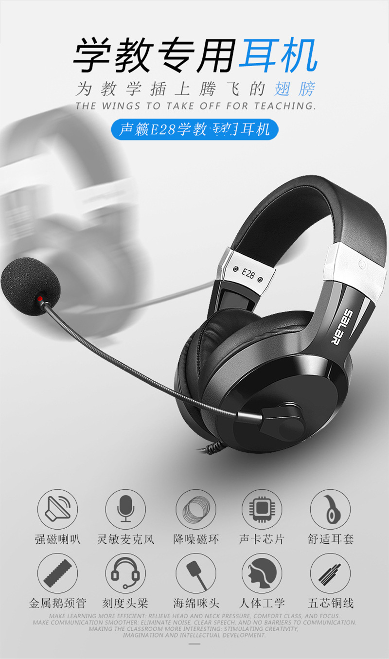 대학 입학 시험을위한 사운드 E28 헤드셋 학생 헤드셋 구두 영어 훈련 헤드셋 유선 시험 헤드셋 도매스토어 가기