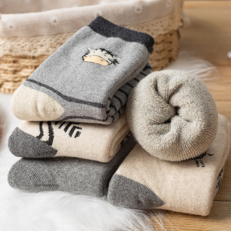 소녀 양말 겨울 기모 두꺼운 테리 어린이 소녀 공주 아기 가을과 겨울 중간 배럴 딸기 베어 양말스토어 가기