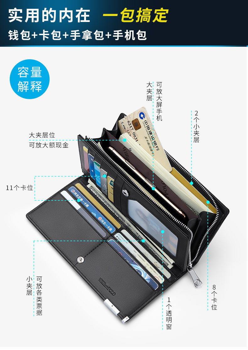 잉황폴 정품 지갑 남성용 롱 스타일 트렌디 브랜드 2026 신상 가죽 지갑 클러치 남성용 머니클립 도매스토어 가기