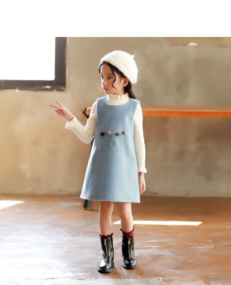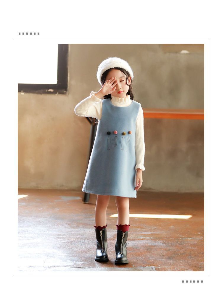 여아 가을 겨울 드레스 2025 신상 어린 소녀 공주 조끼 모직 드레스 세련된 어린이 밍크 벨벳 드레스스토어 가기