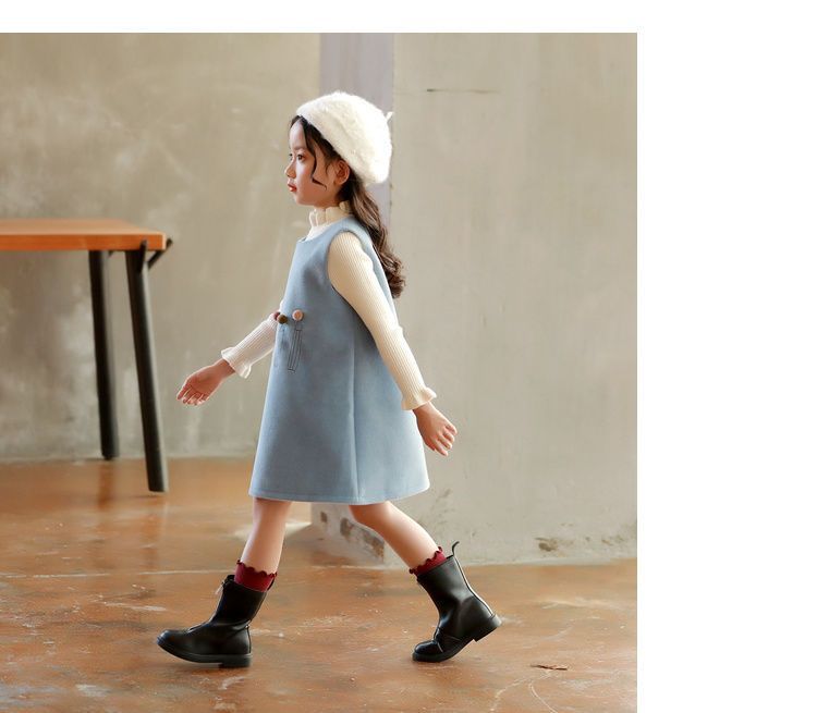 여아 가을 겨울 드레스 2025 신상 어린 소녀 공주 조끼 모직 드레스 세련된 어린이 밍크 벨벳 드레스