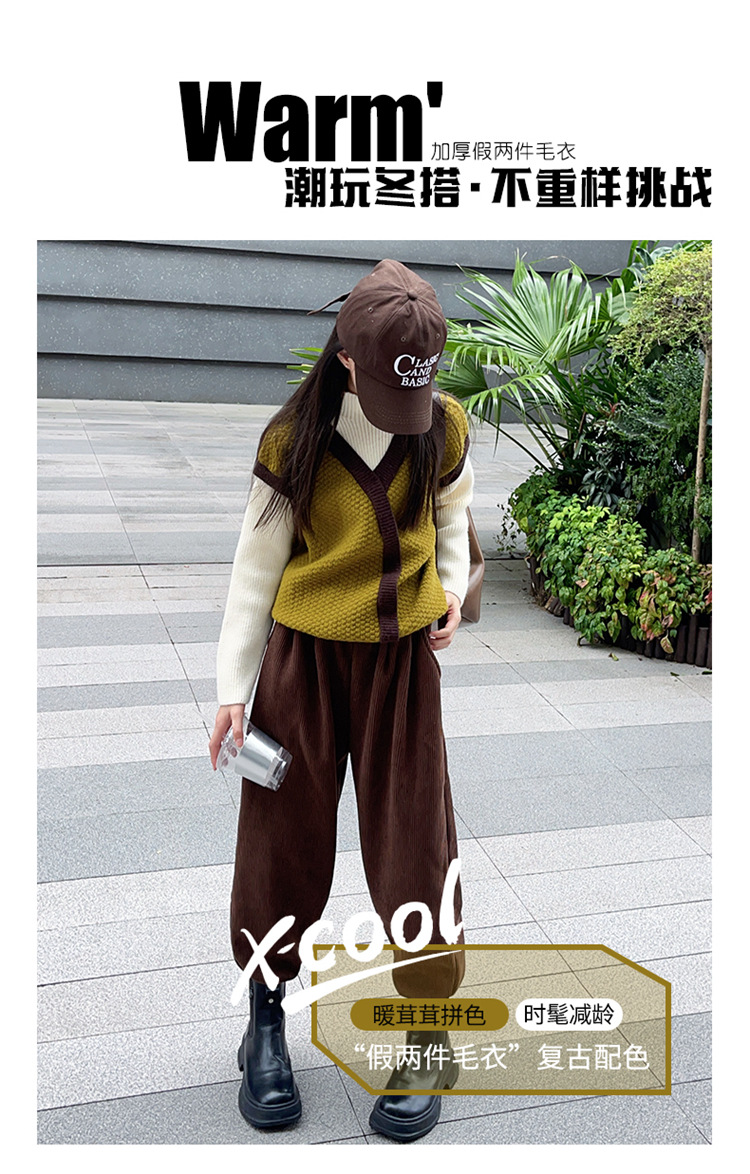소녀 두꺼운 스웨터 세트 2023 겨울 원피스 소녀 큰 어린이 가짜 투피스 니트웨어 기모 토레 바지 캐주얼 바지스토어 가기