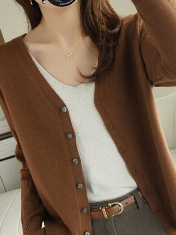 도매 2024 봄과 가을 새로운 스웨터 V 넥 카디건 여성 코트 단색 느슨한 짧은 외부 스웨터 봄스토어 가기