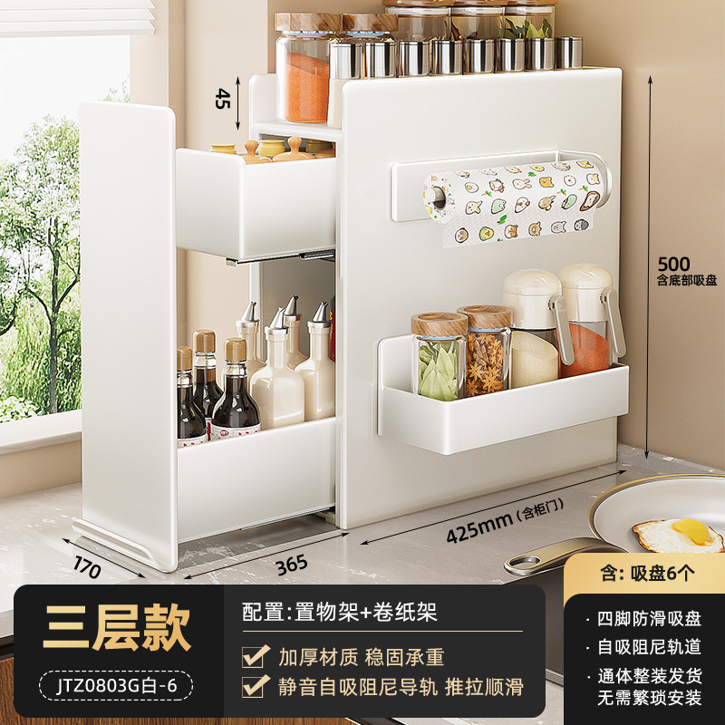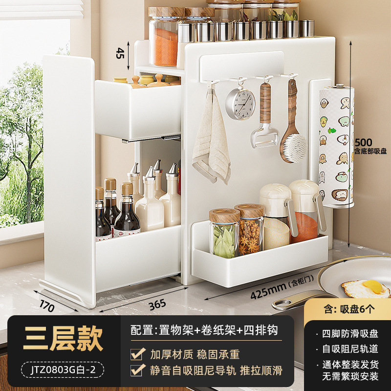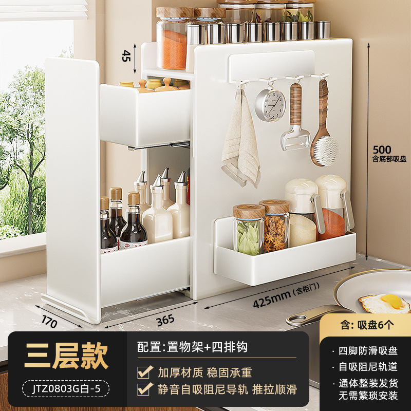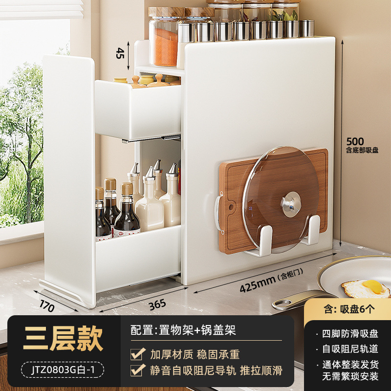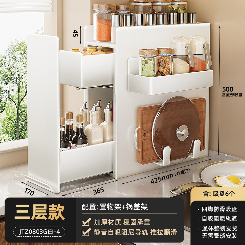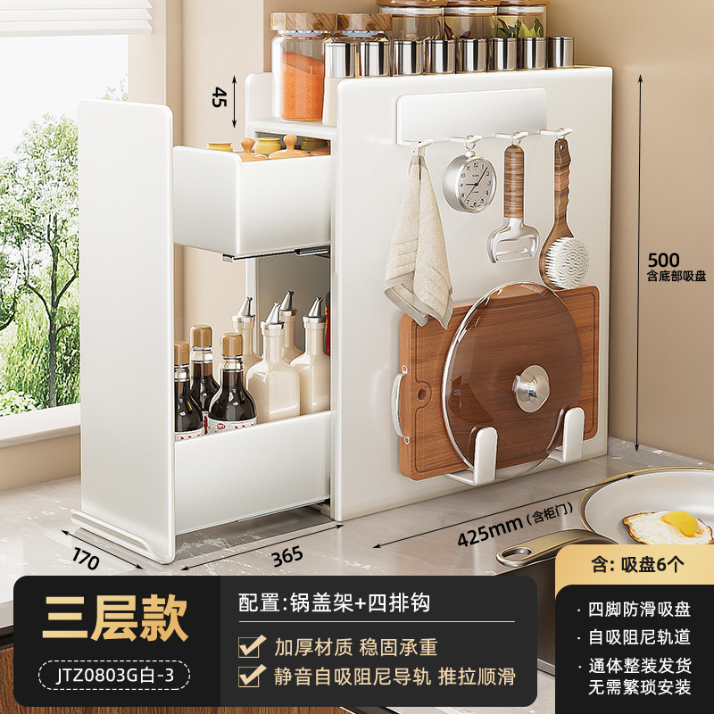 • 화이트-[설치 불필요] 3단 폭 17CM + 수납선반 + 냄비뚜껑걸이