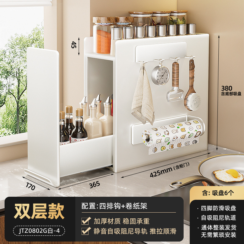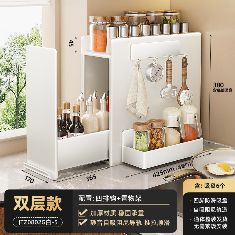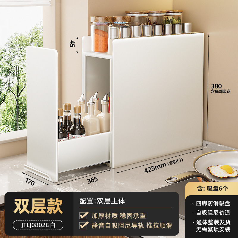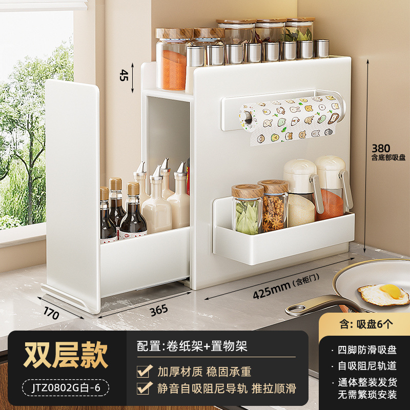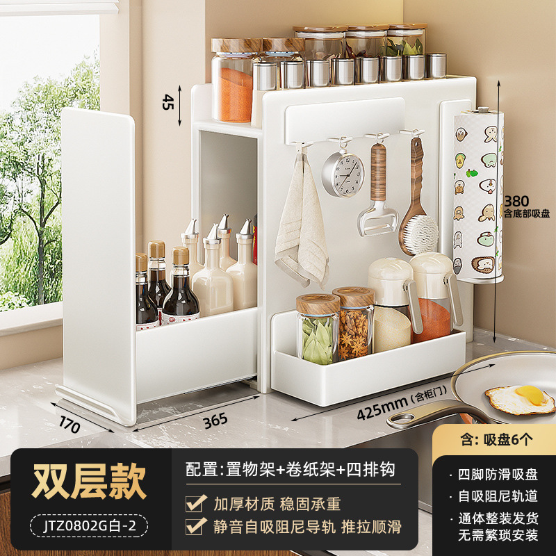 • 화이트-[설치 불필요] 더블 레이어 폭 17CM + 수납선반 + 냄비뚜껑걸이
