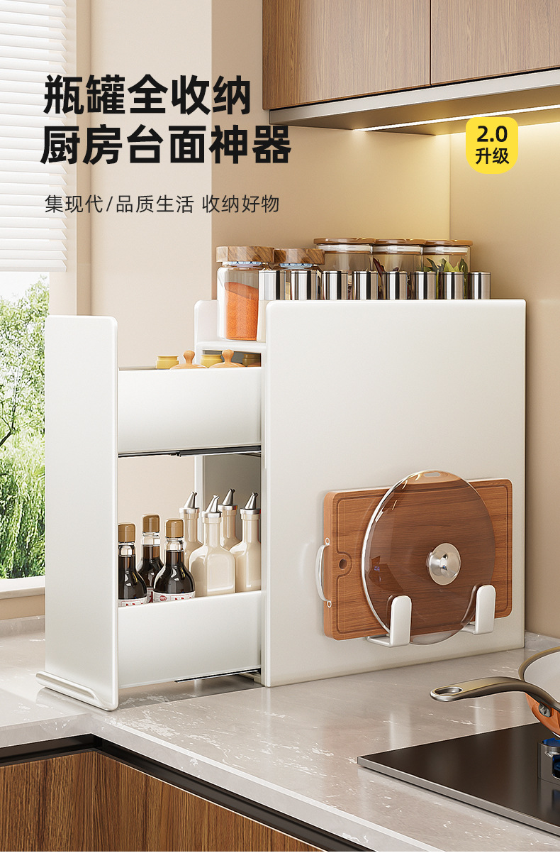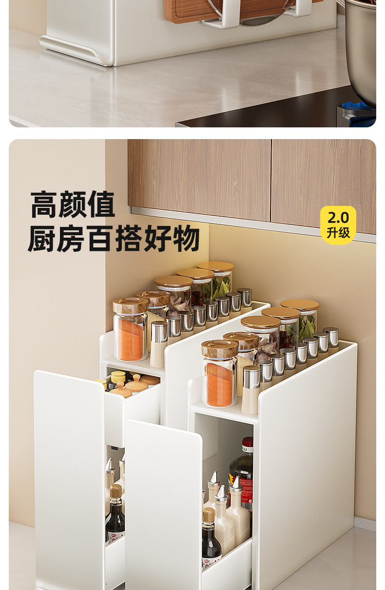 주방 보관 랙 다기능 풀 아웃 매우 좁은 측면 조미료 소금 조미료 탱크 저장 상자 카운터 탑 선반스토어 가기