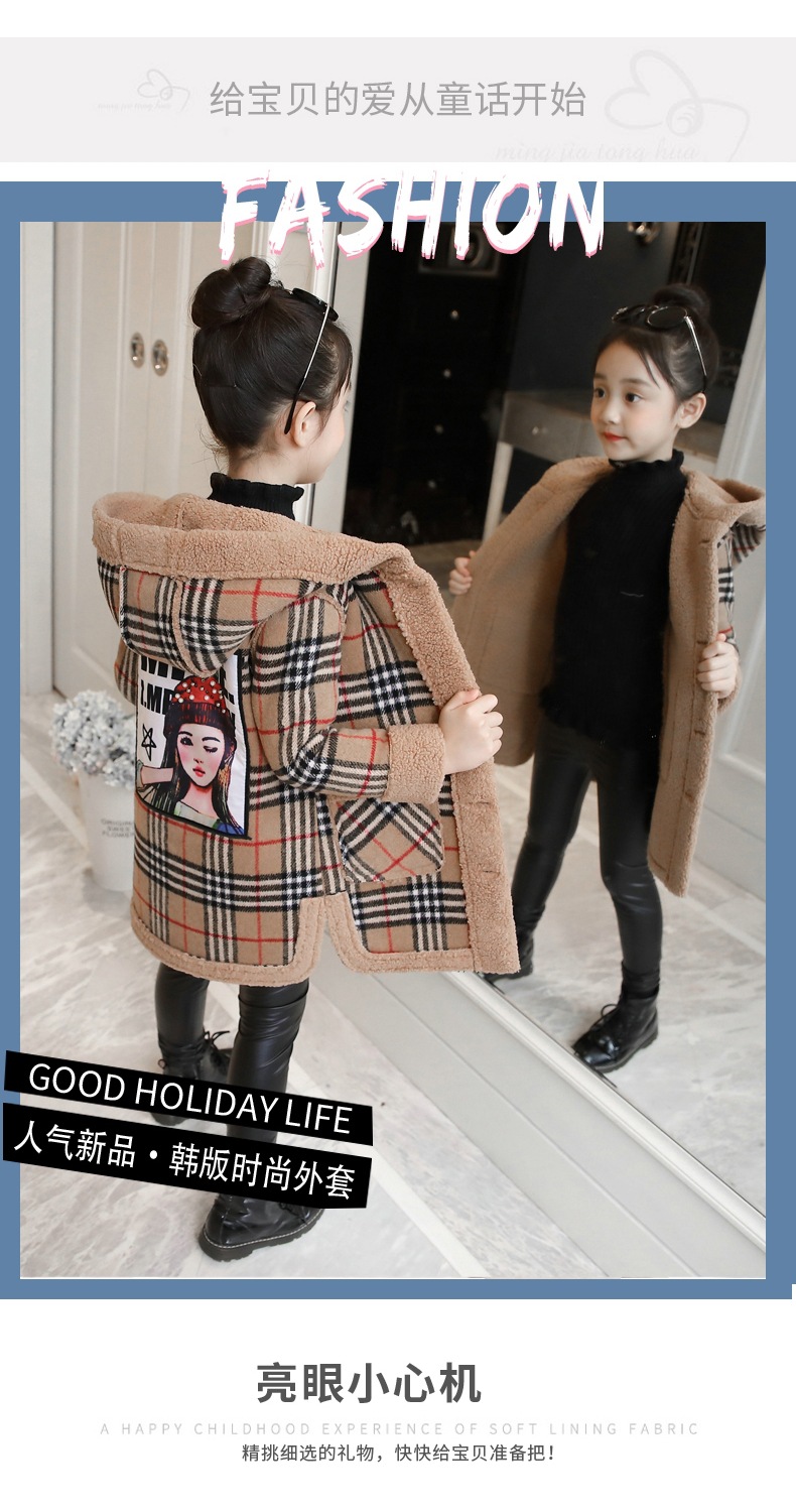 여아용 가을 겨울 두꺼운 코트 2025 신상 중대형 어린이용 소녀 스타일리시하고 다재다능한 중간 길이 겨울 코트 유행 상의스토어 가기