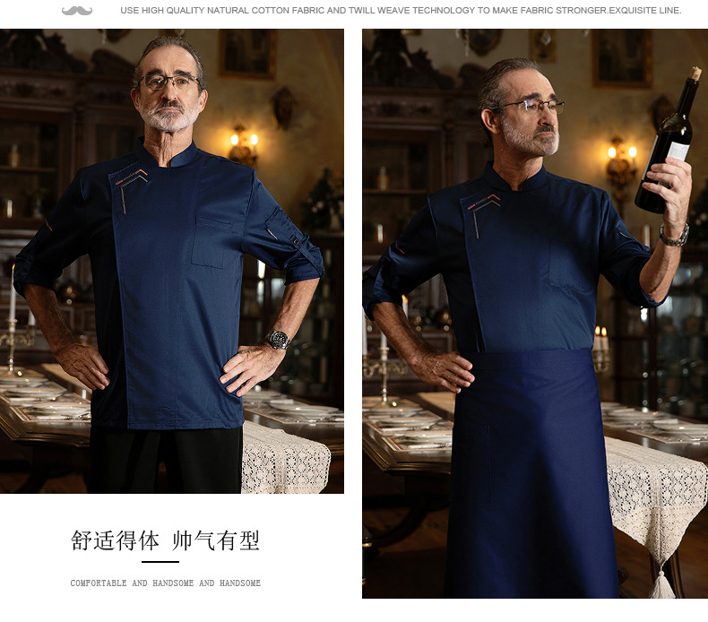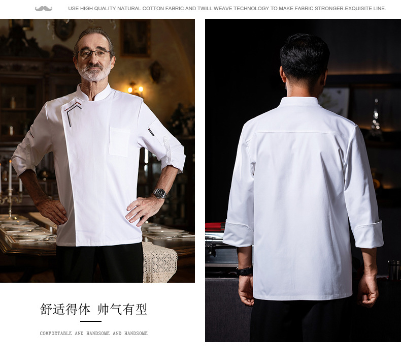 高级厨师工作服长袖秋冬装男酒店西餐厅饭店厨房蛋糕烘焙高端后厨