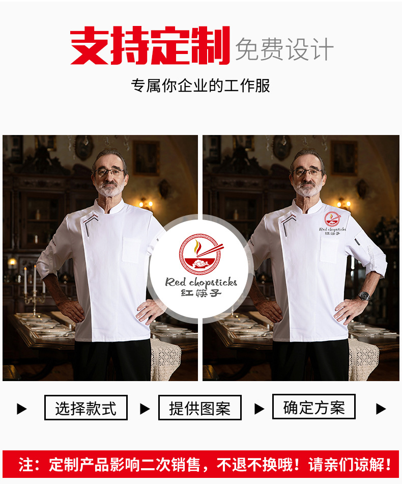 高档餐厅餐饮厨师工作服长袖男女酒店食堂后厨秋冬厨师服工装西餐