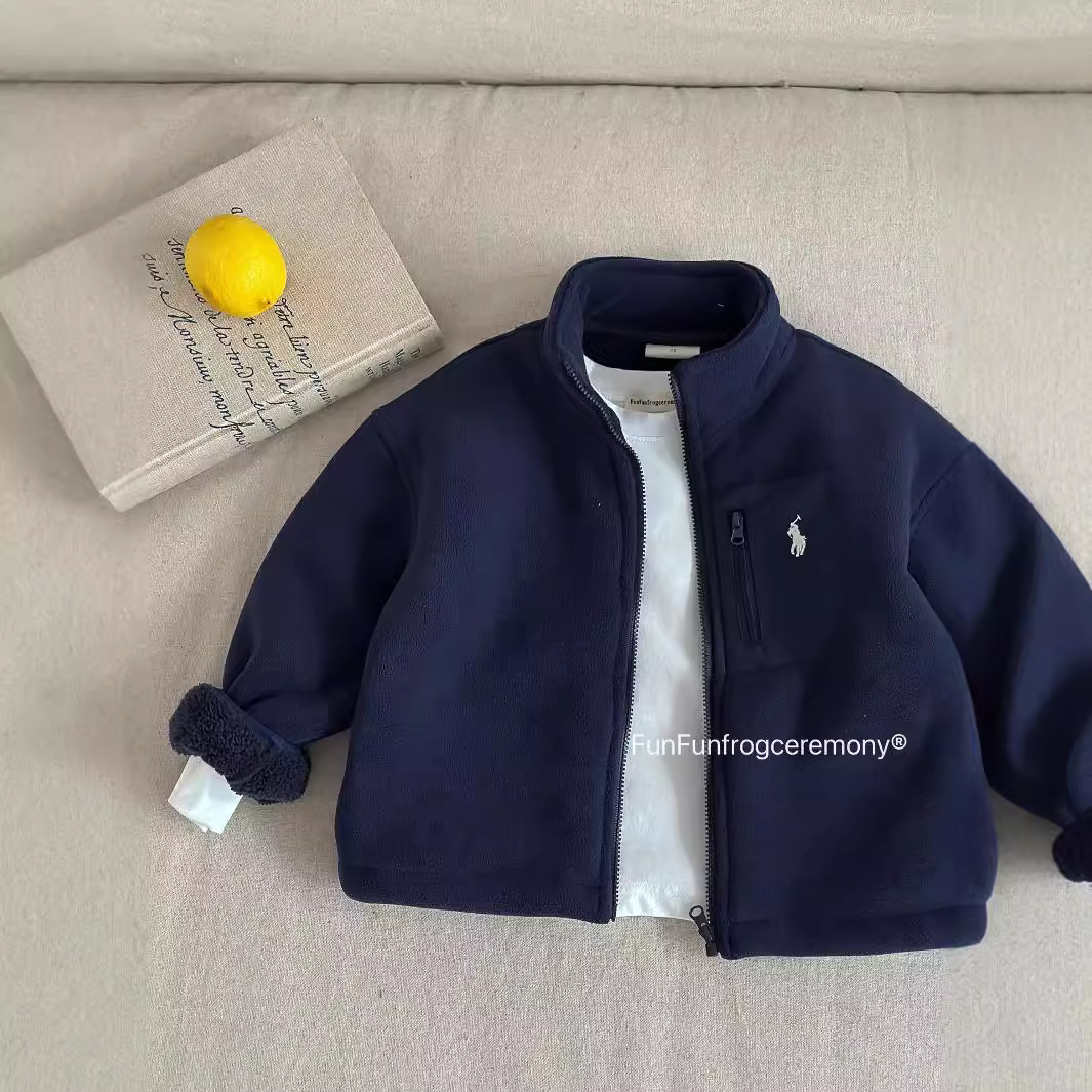 새로운 어린이용 복합 벨벳 재킷, 한국 스타일 남아용 가을 겨울 하이넥 재킷, 멋진 중소 어린이용 따뜻한 외투