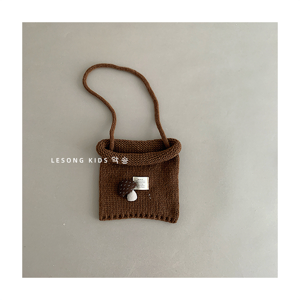 Ins 스타일 어린이 귀여운 버섯 니트 크로스 바디 백 가을과 겨울 아기 거리 촬영 올 매치 베어 울 숄더 백