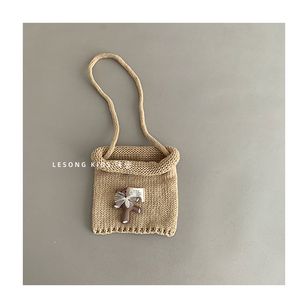 Ins 스타일 어린이 귀여운 버섯 니트 크로스 바디 백 가을과 겨울 아기 거리 촬영 올 매치 베어 울 숄더 백스토어 가기
