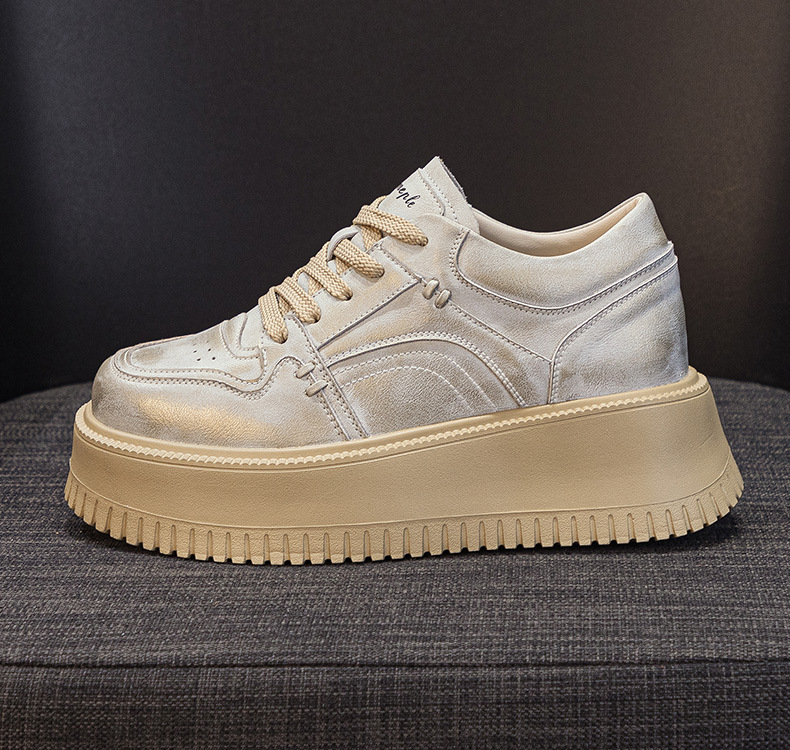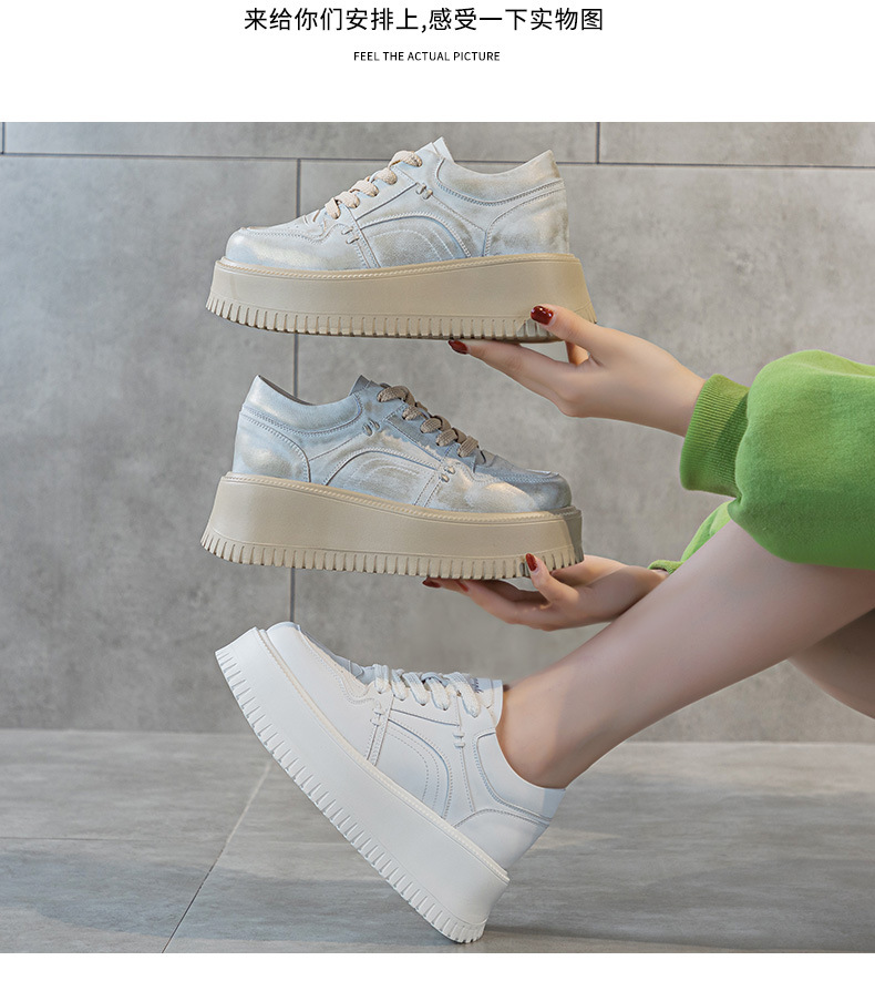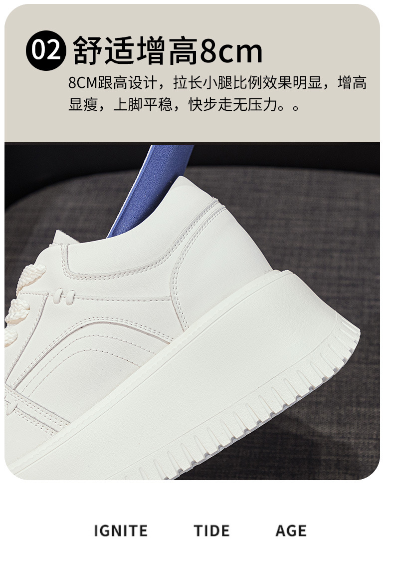 8cm 두꺼운 밑창 높이 증가 작은 흰색 신발 여성 올 매치 가죽 캐주얼 운동화 보드 신발 플랫폼 신발스토어 가기