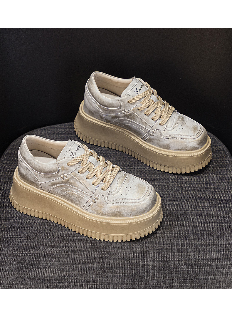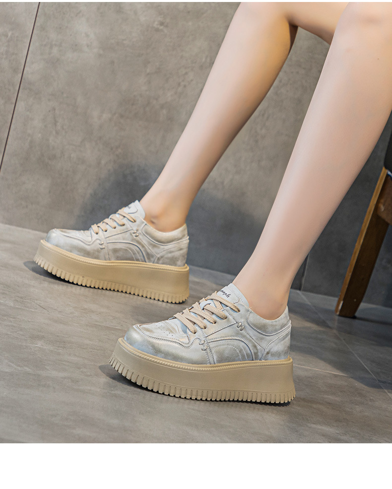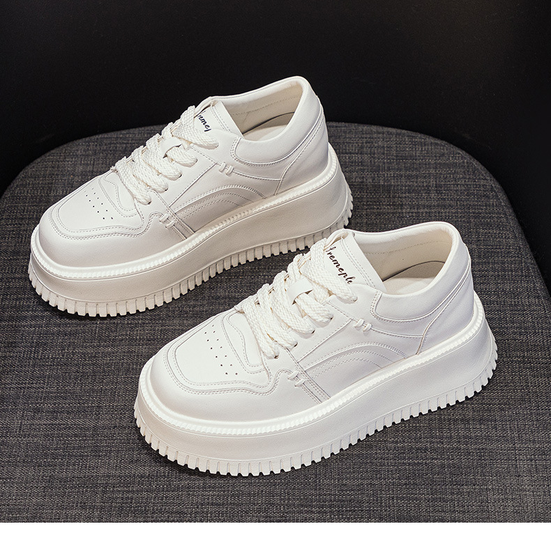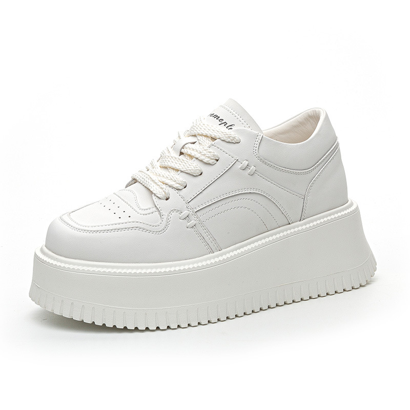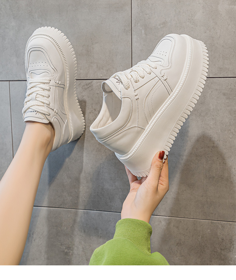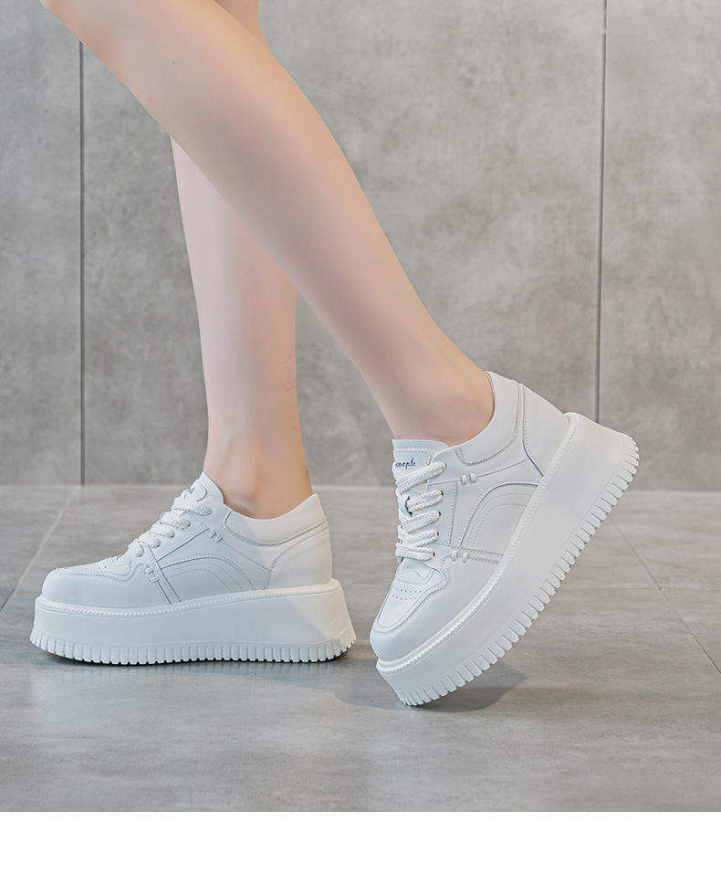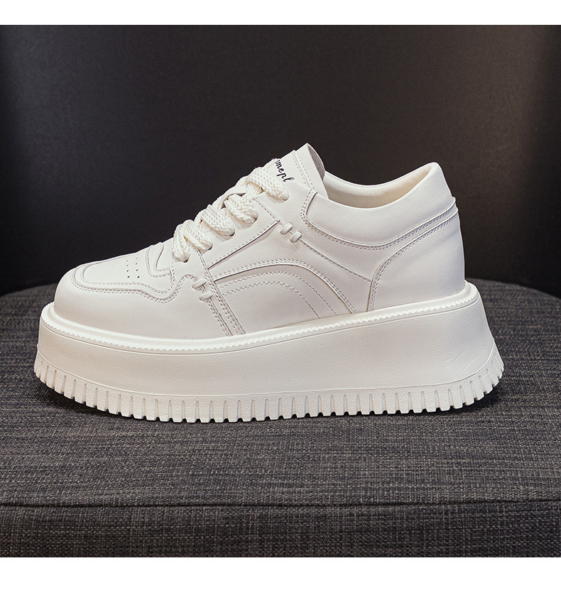 8cm 두꺼운 밑창 높이 증가 작은 흰색 신발 여성 올 매치 가죽 캐주얼 운동화 보드 신발 플랫폼 신발