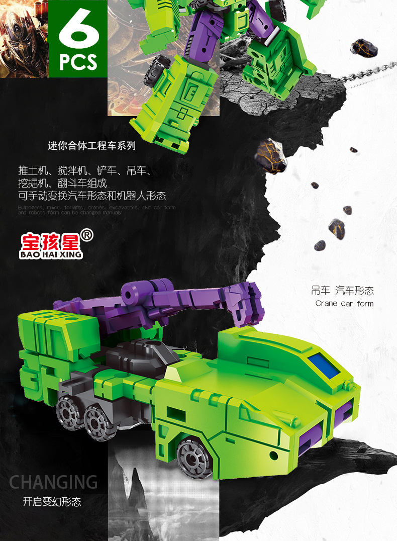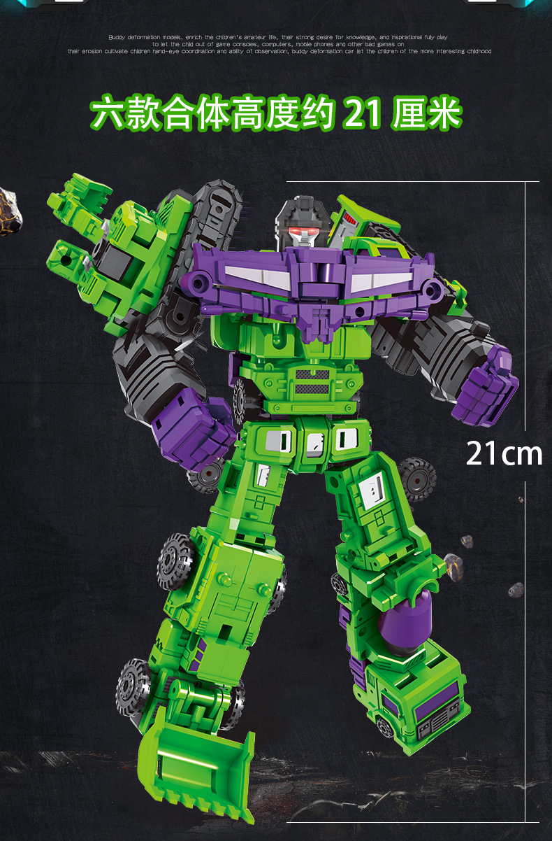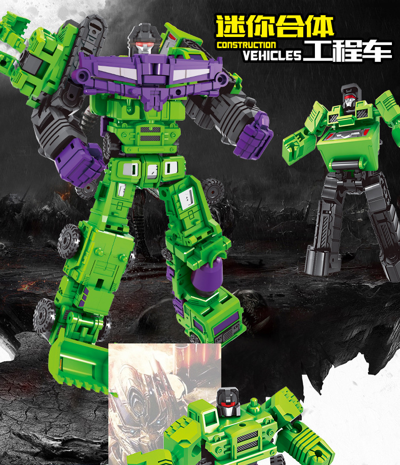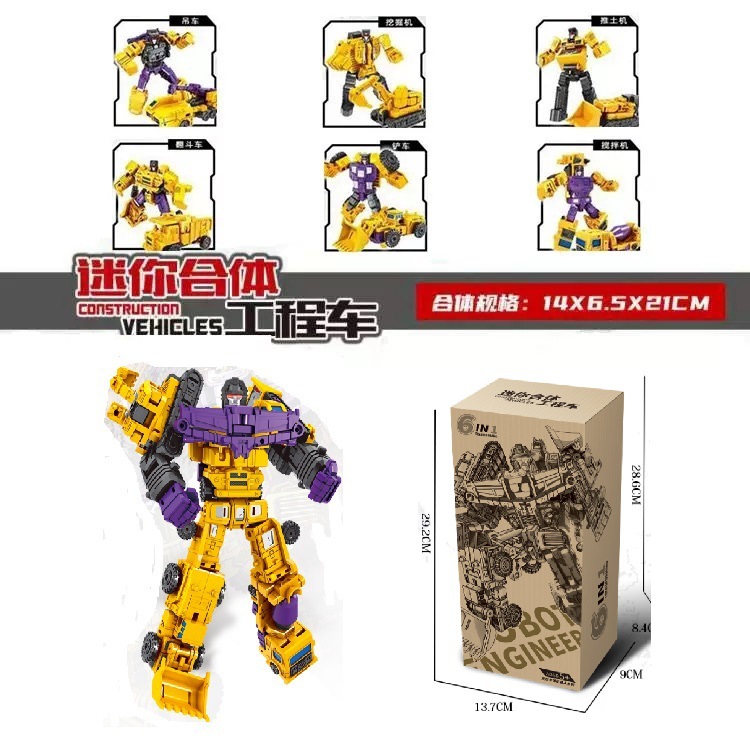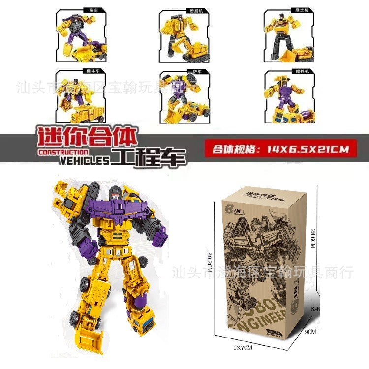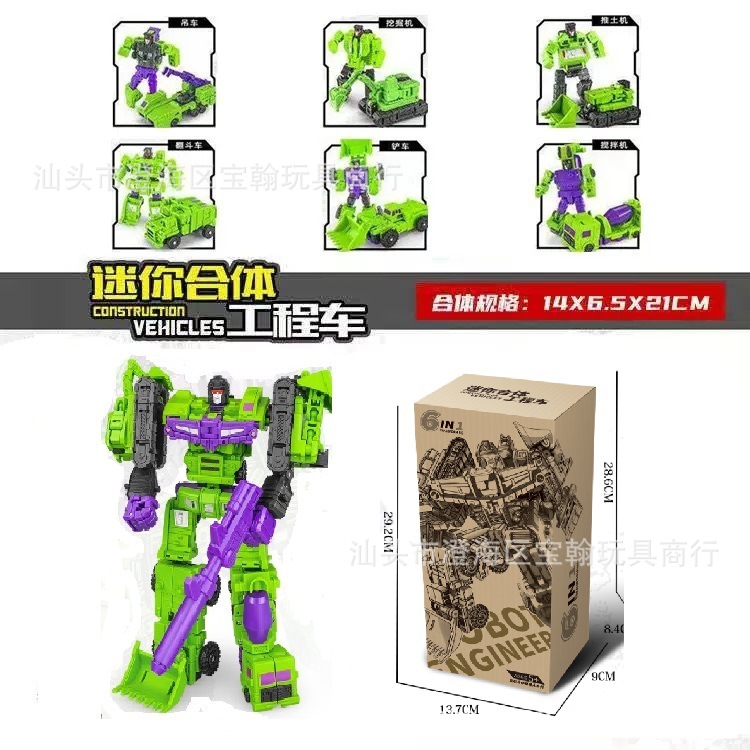 국경 변형 장난감 작은 힘 신 6 대 1 조합 킹콩 엔지니어링 차량 굴삭기 로봇 소년 모델