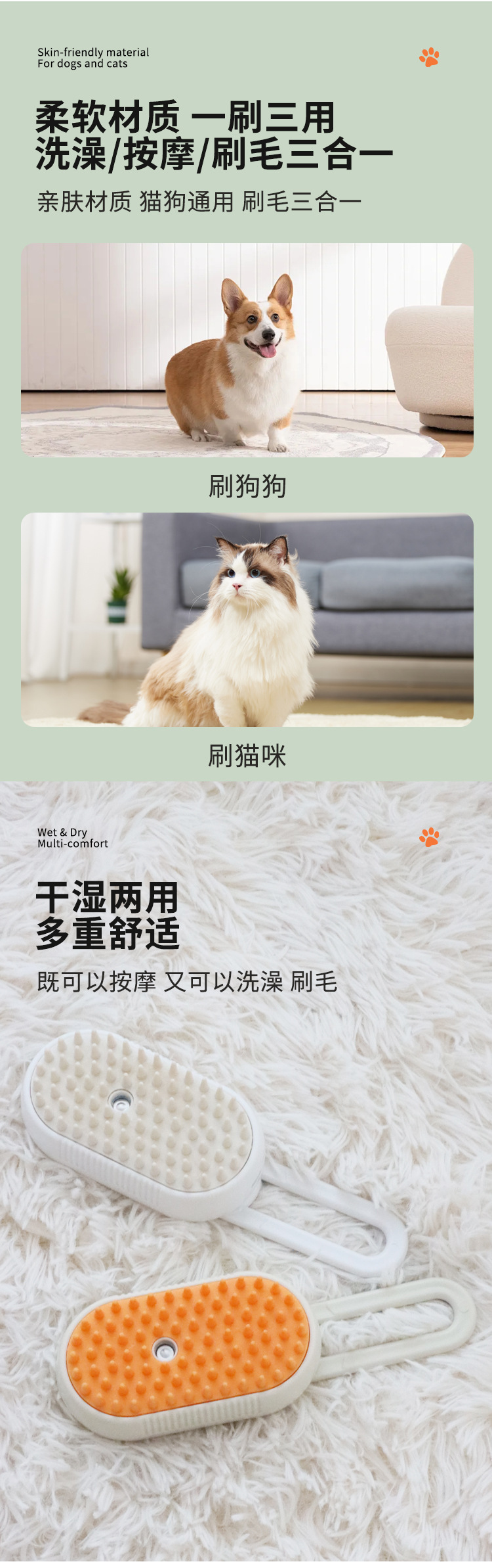 애완동물 실리콘 스프레이 빗, 목욕용, 털날림 방지, 털 제거, 마사지 빗, 고양이와 강아지용 전기 스팀 빗, 도매스토어 가기