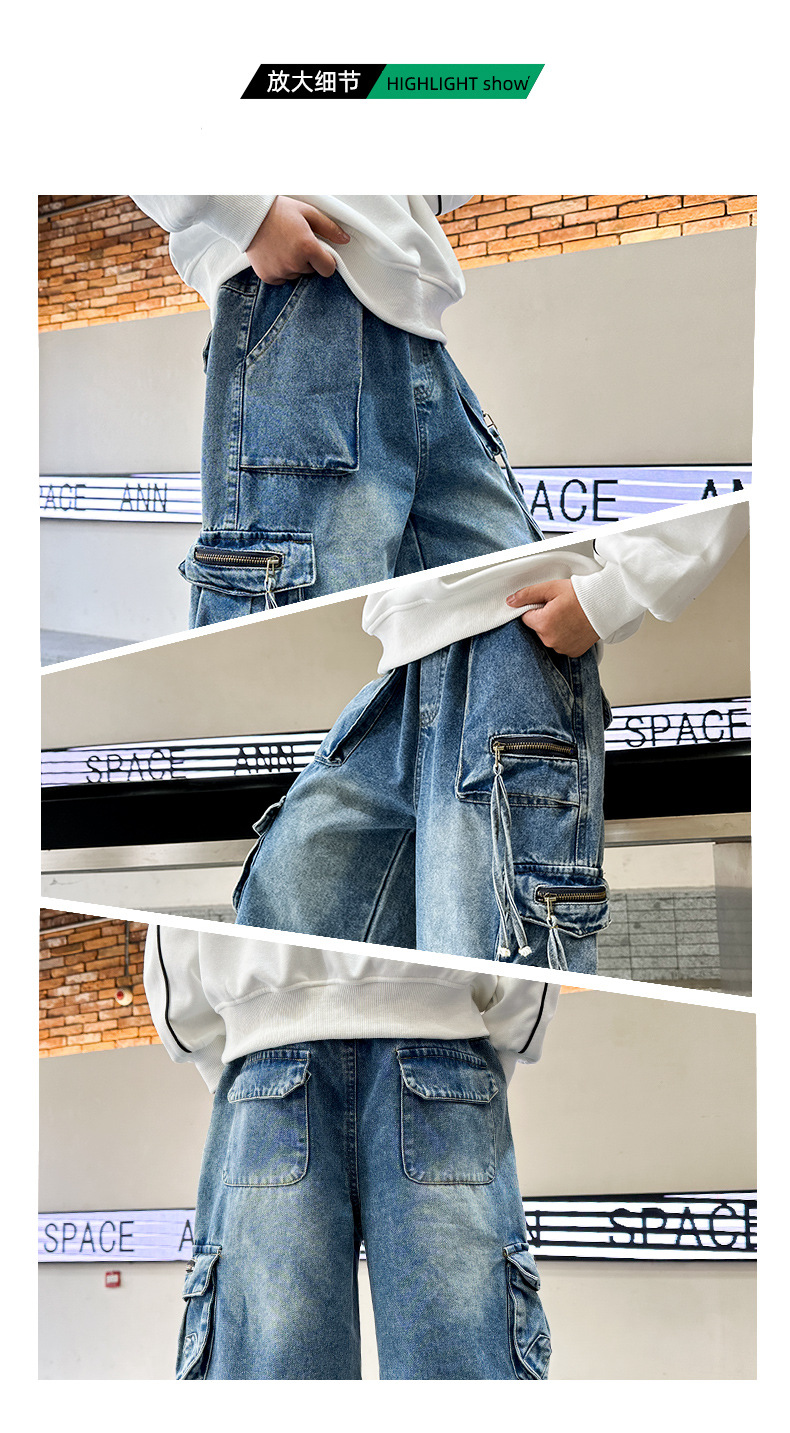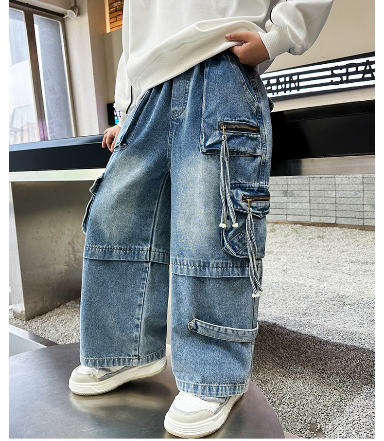 소년 가을 바지 튀긴 거리 청바지 2024 봄과 가을 새로운 대형 아동복 어린이 가을 바지