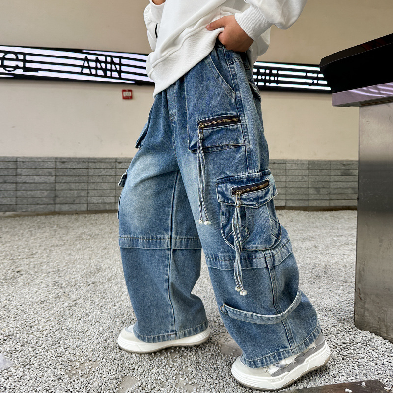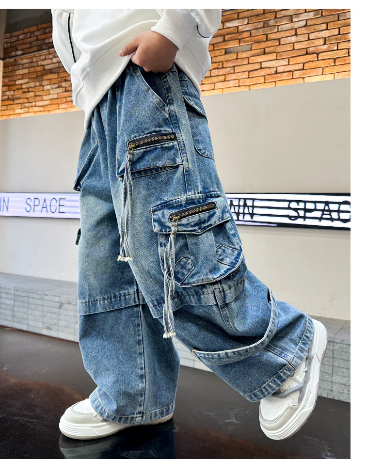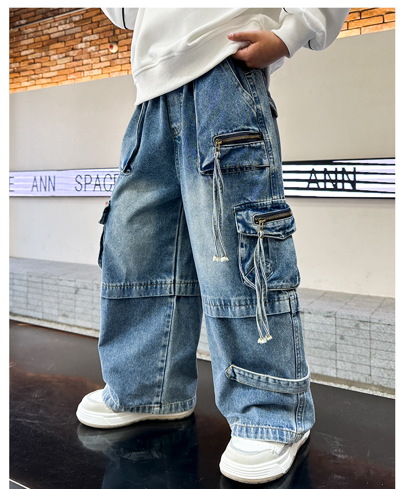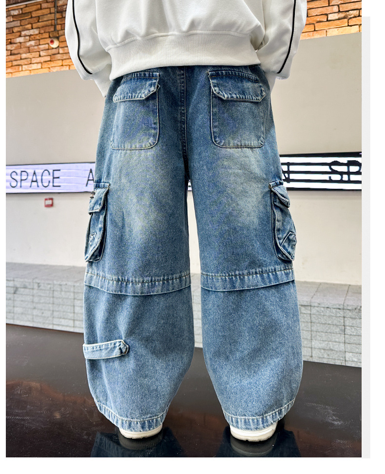 소년 가을 바지 튀긴 거리 청바지 2024 봄과 가을 새로운 대형 아동복 어린이 가을 바지스토어 가기