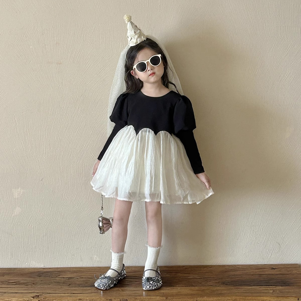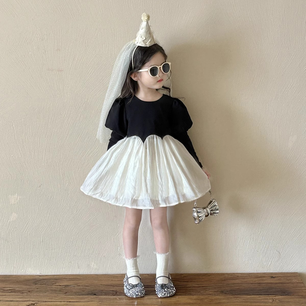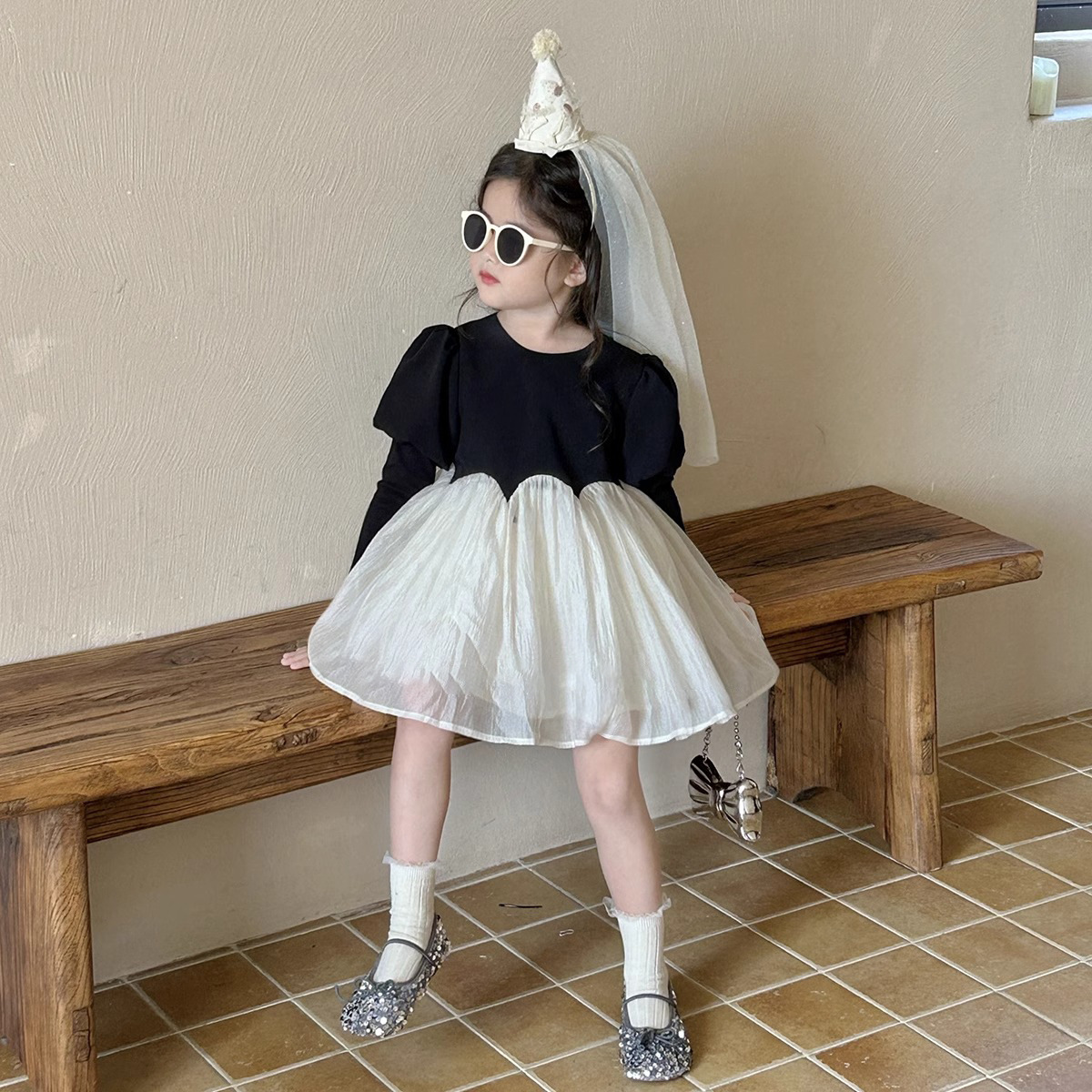 아동 의류 소녀 복고풍 퍼프 슬리브 드레스 2025 가을 스타일 새로운 어린이 푹신한 공주 드레스 생일 드레스스토어 가기