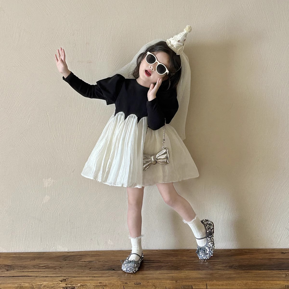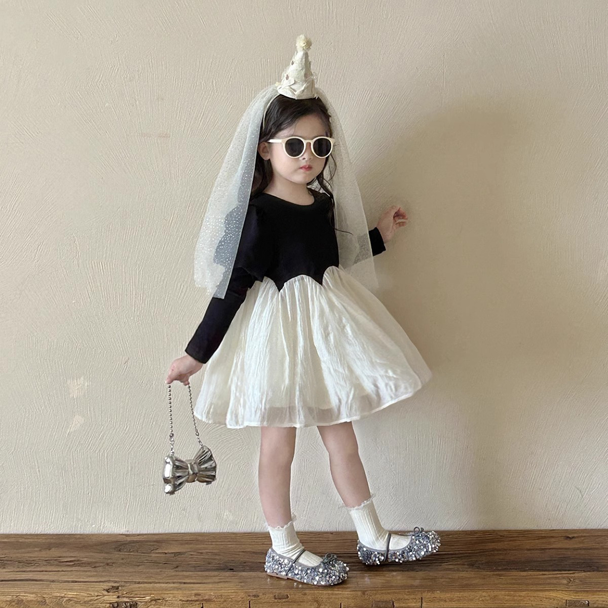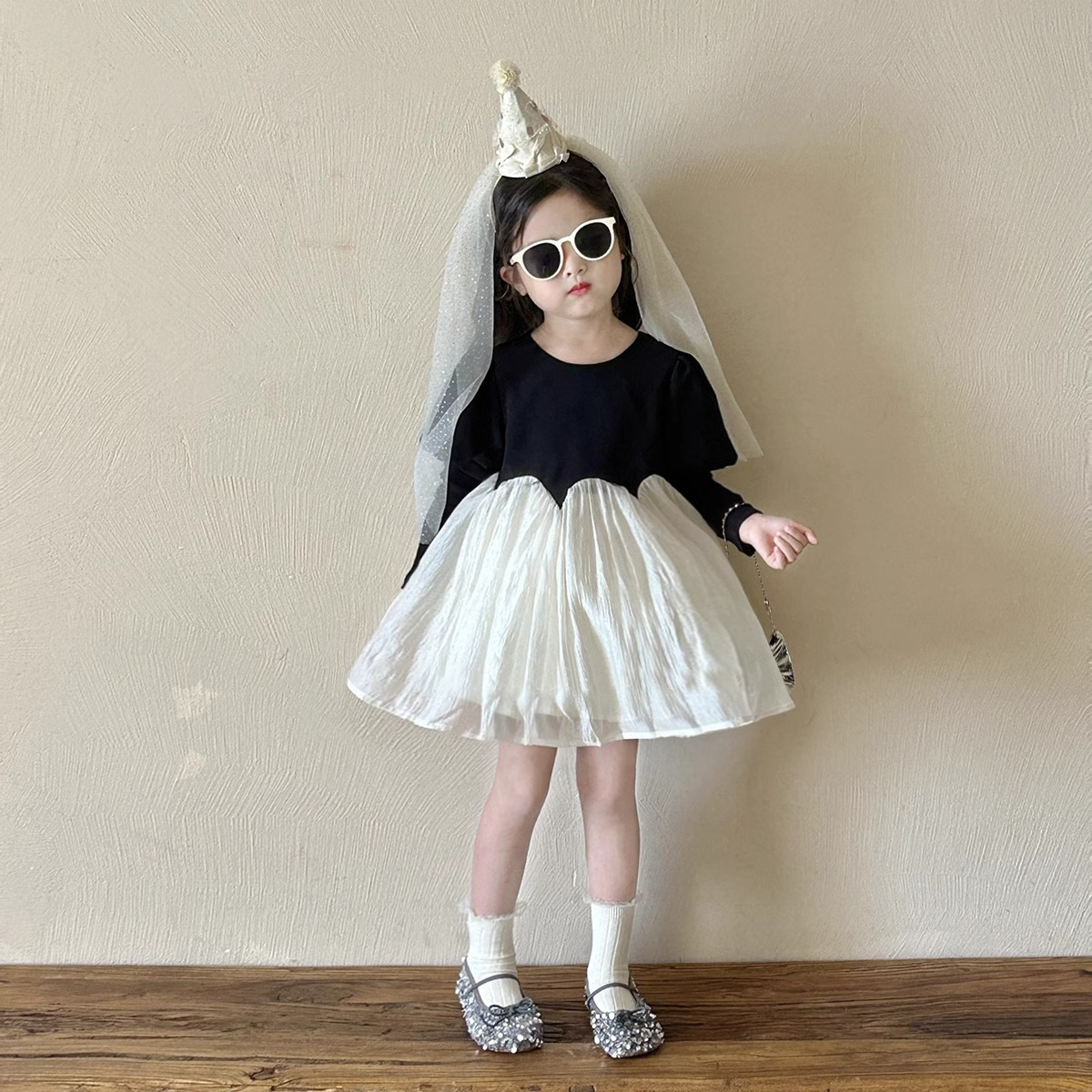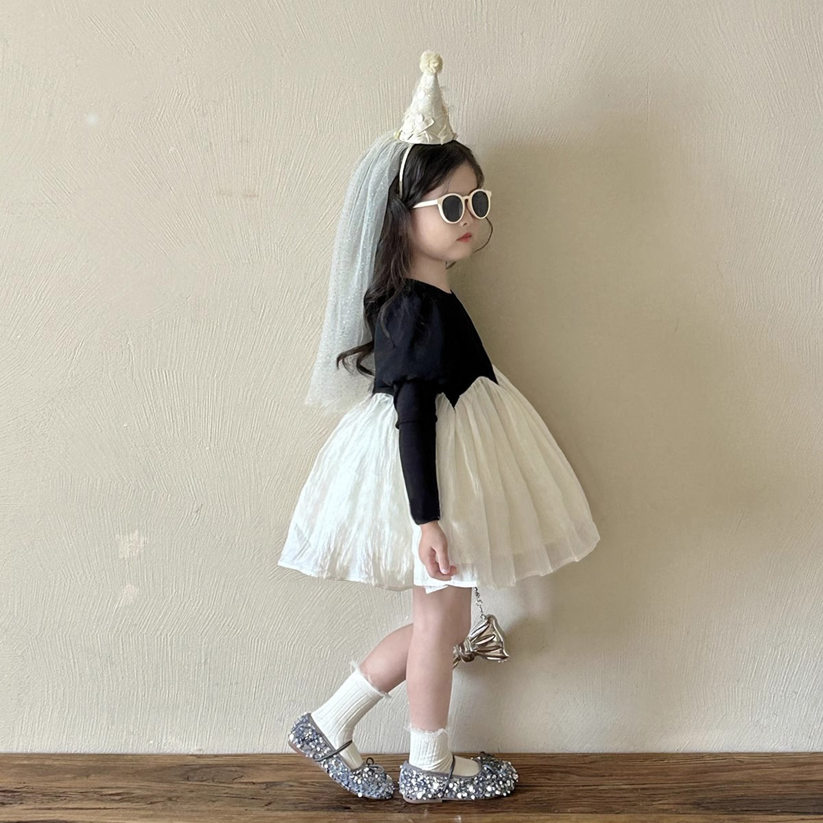 아동 의류 소녀 복고풍 퍼프 슬리브 드레스 2025 가을 스타일 새로운 어린이 푹신한 공주 드레스 생일 드레스스토어 가기