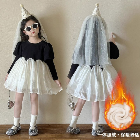 • 여자아이 퍼프 소매 원피스 Q137 기모 안감