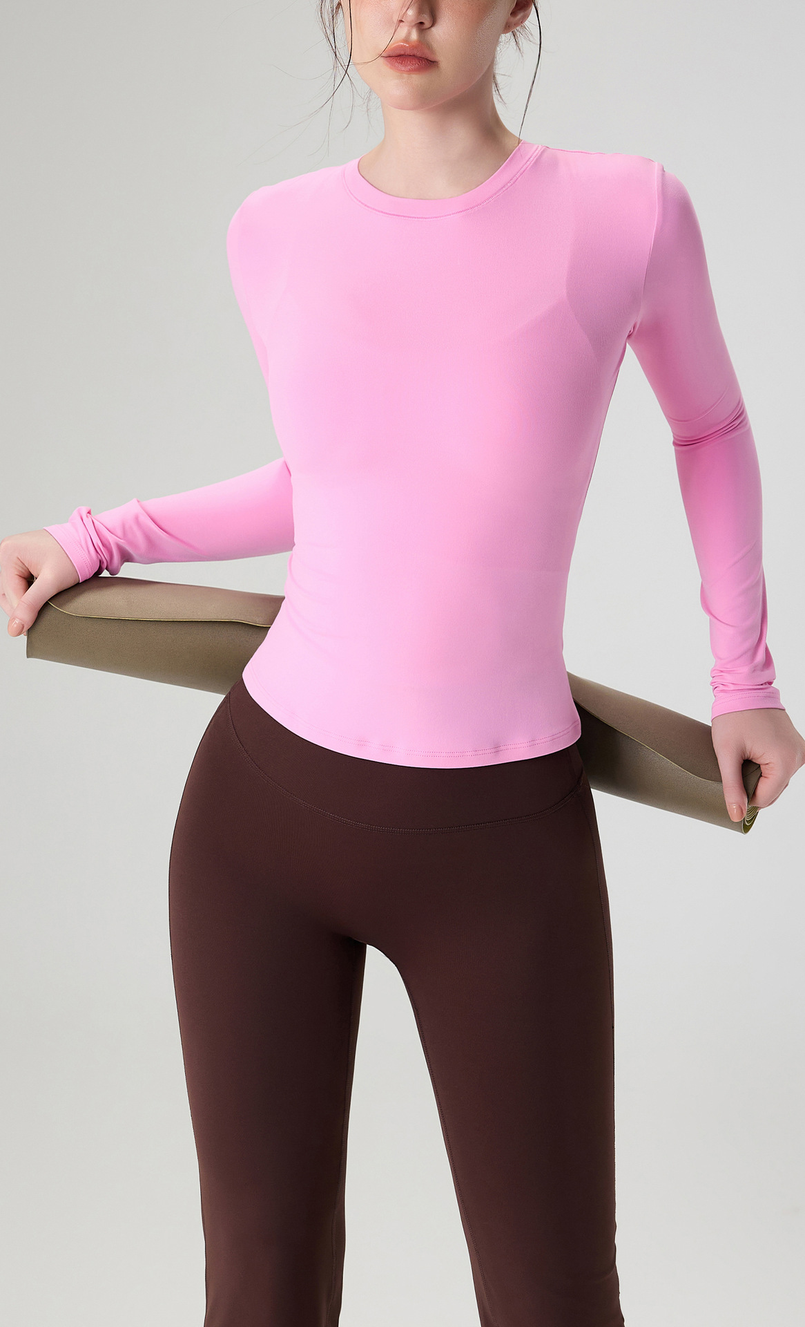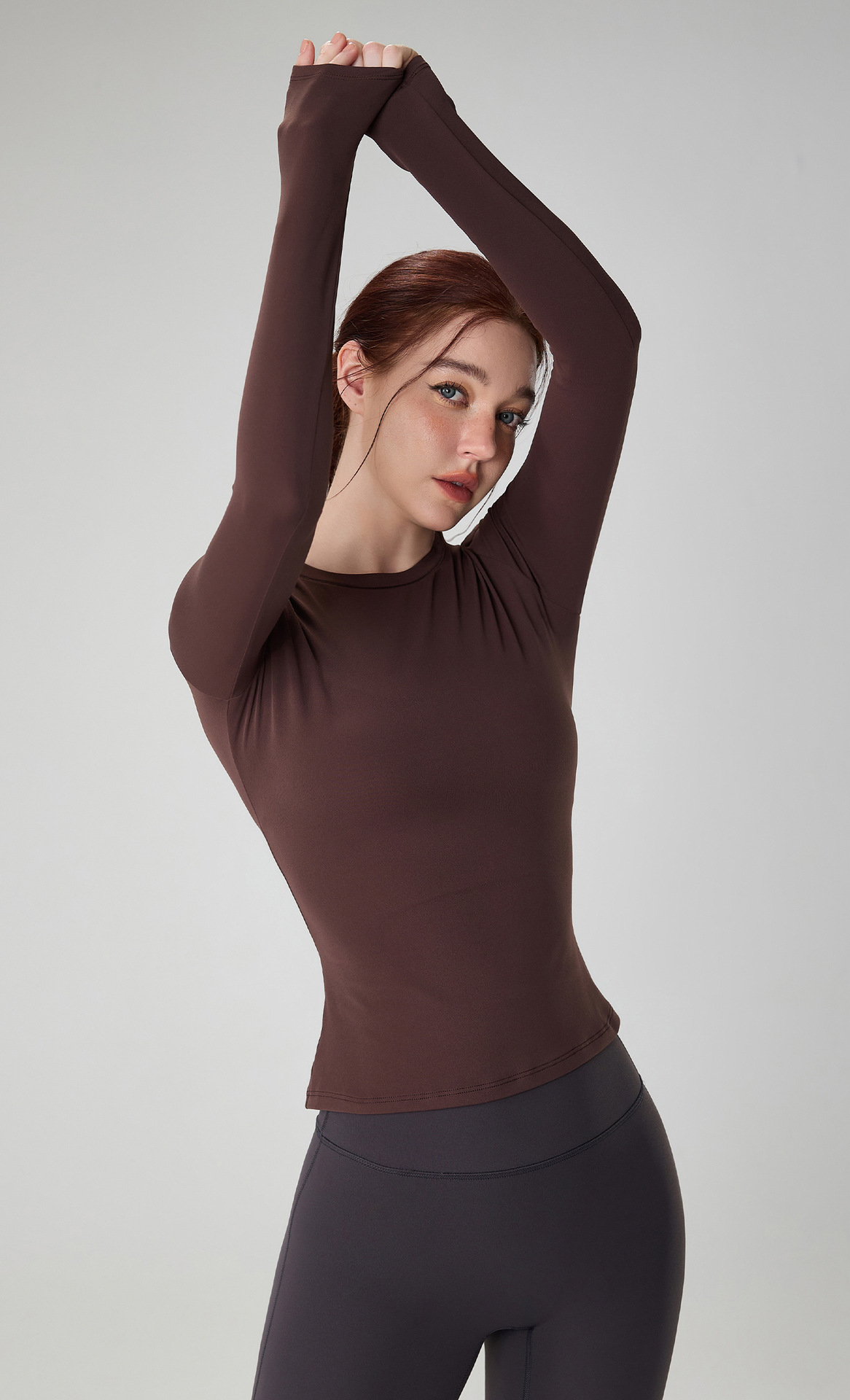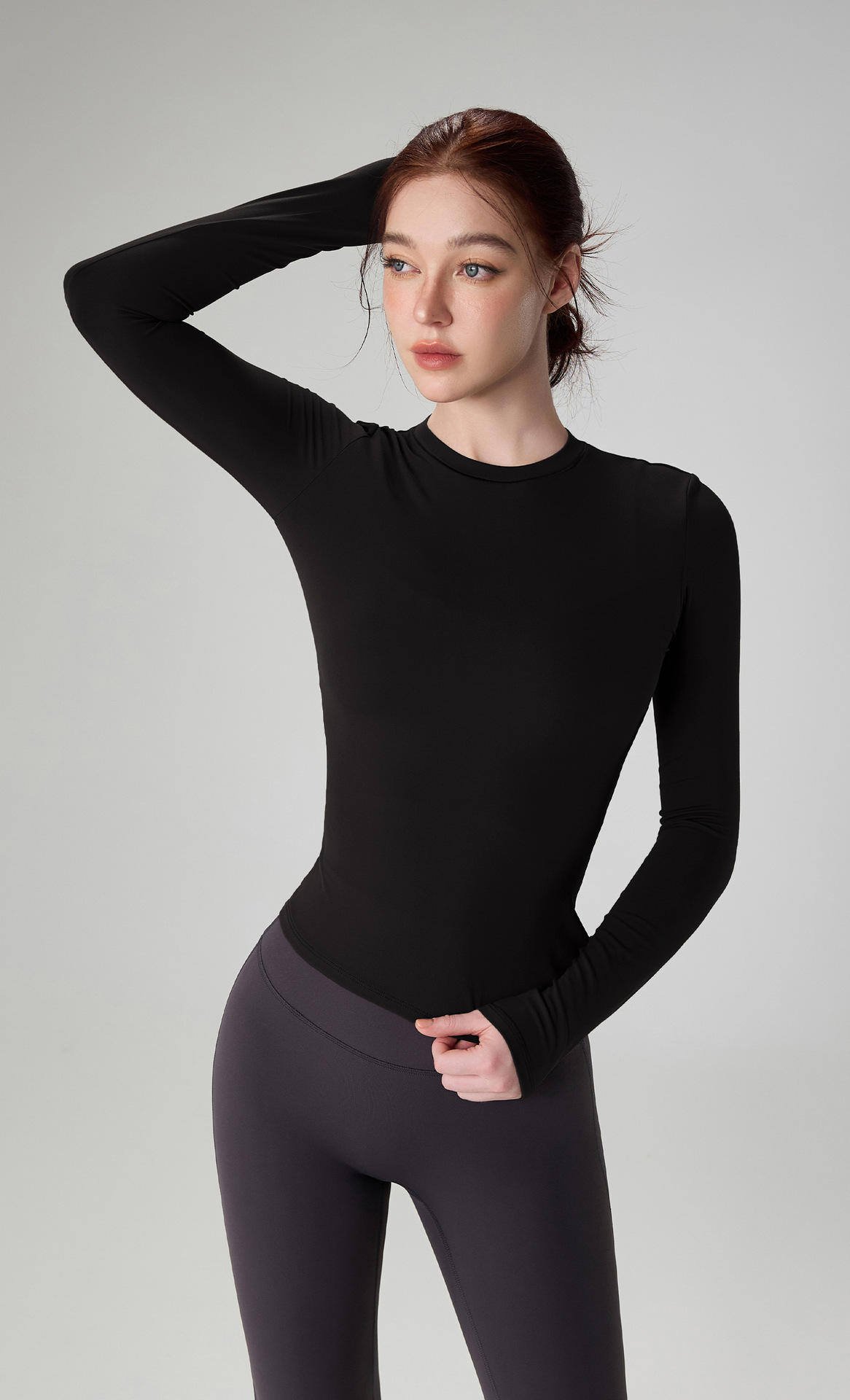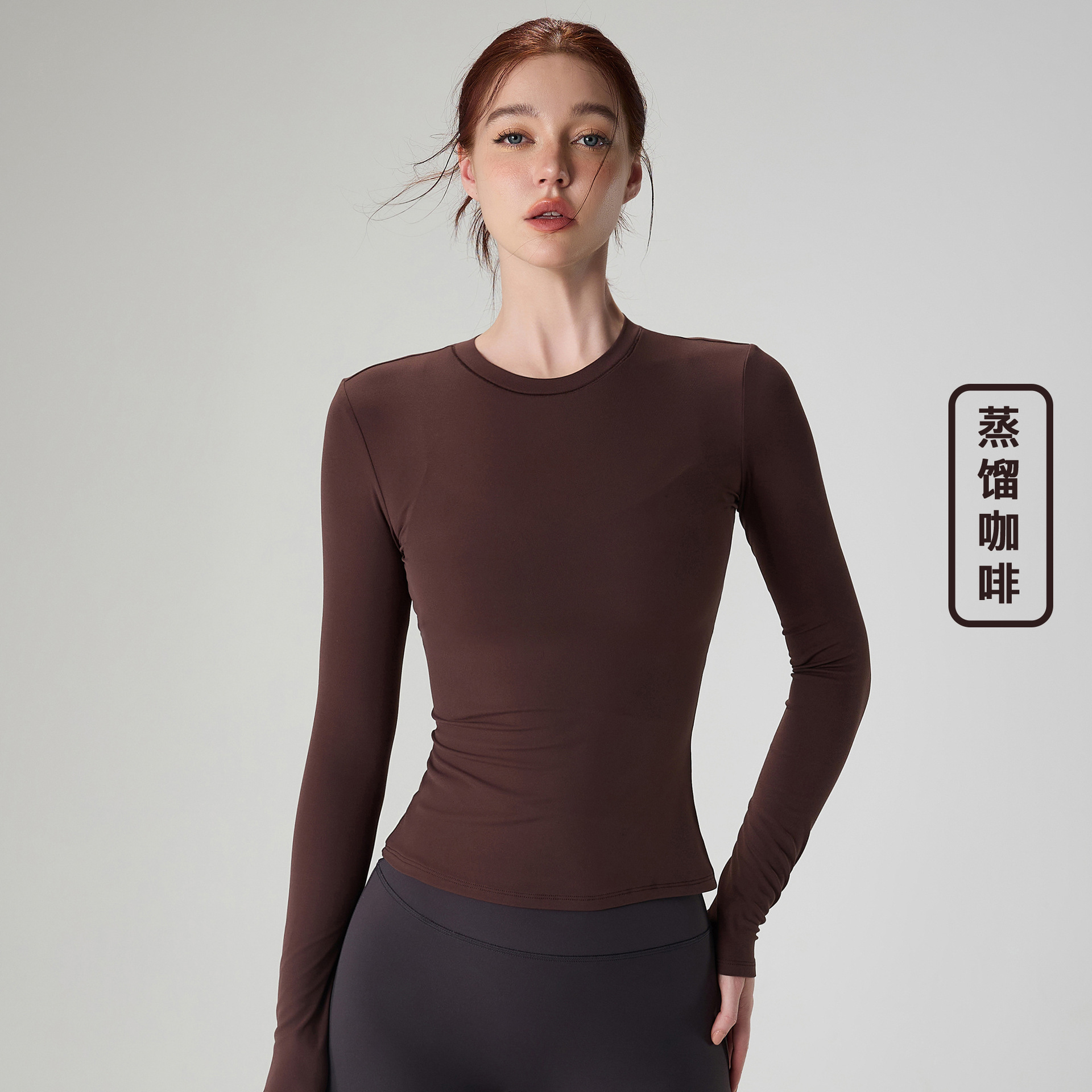 동지 가을 라운드넥 타이트 요가복 긴팔 피트니스 여성 러닝 사이클링복 이너 슬림핏 베이스레이어 겨울용스토어 가기
