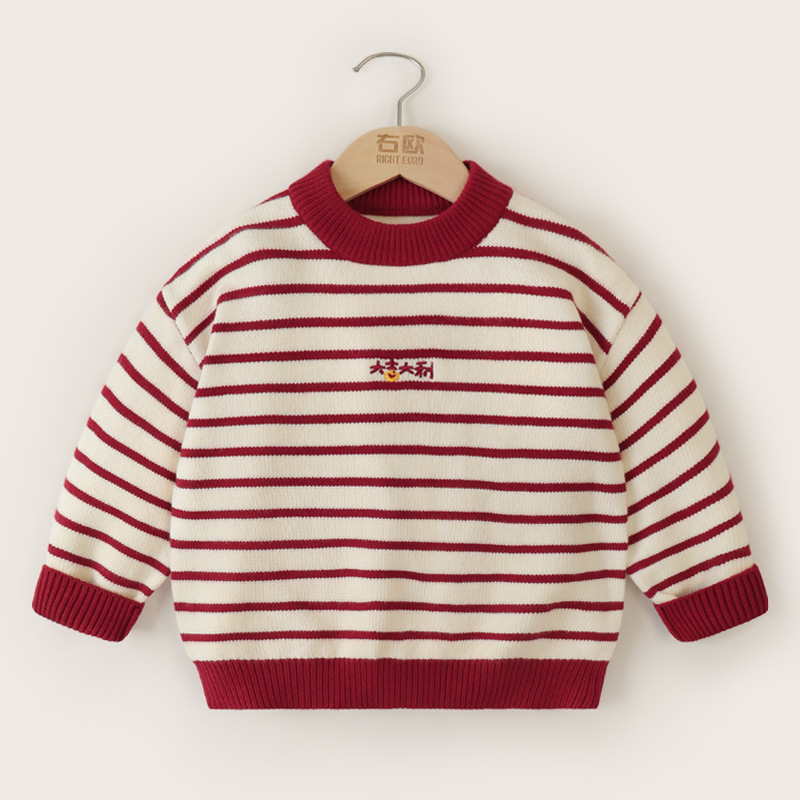 소년 새해 줄무늬 스웨터 겨울 스웨터 따뜻한 가을, 겨울 새로운 아동복 아기 어린이 의류 유행