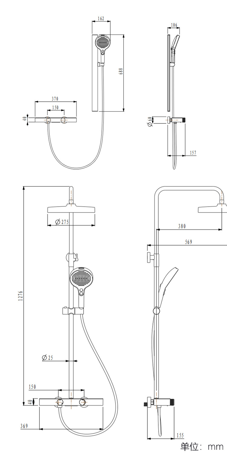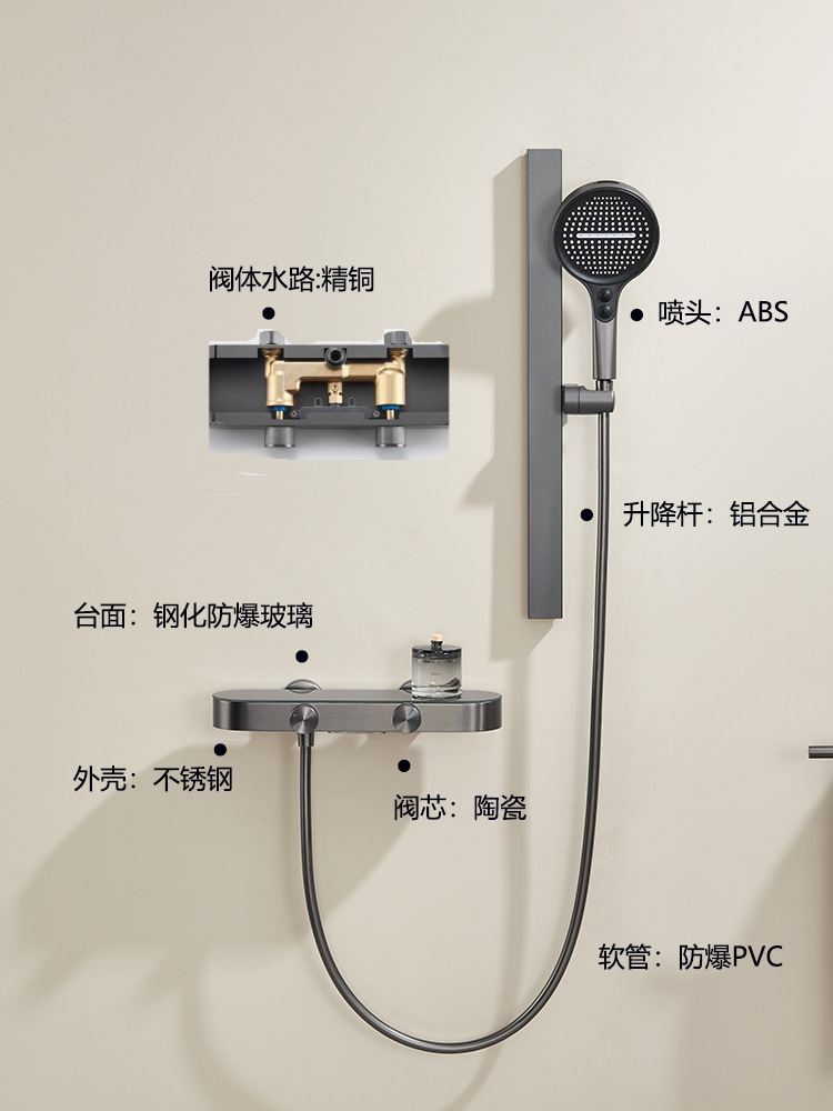 총 회색 우유 흰색 간단한 비 최고 스프레이 샤워 세트 저장 테이블 호텔 홈 뜨겁고 차가운 압력 샤워