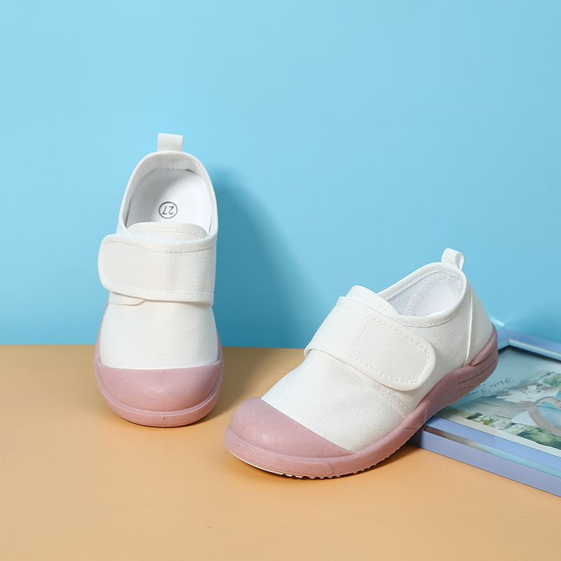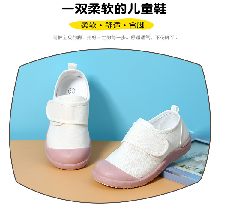 어린이 캔버스 신발 봄과 가을 소년과 소녀 유치원 흰색 신발 실내 아기 통기성 미끄럼 방지 댄스 체조 신발스토어 가기