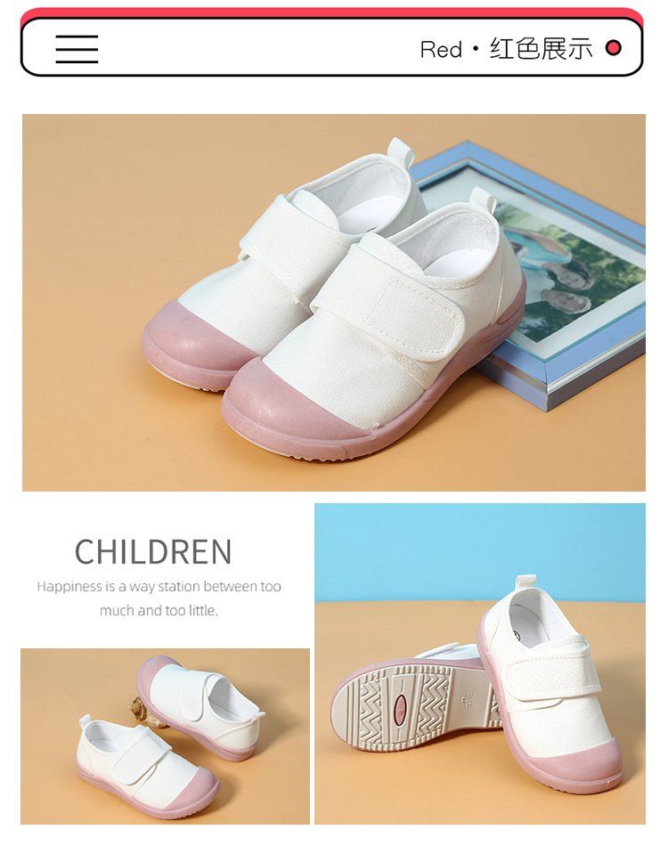 어린이 캔버스 신발 봄과 가을 소년과 소녀 유치원 흰색 신발 실내 아기 통기성 미끄럼 방지 댄스 체조 신발