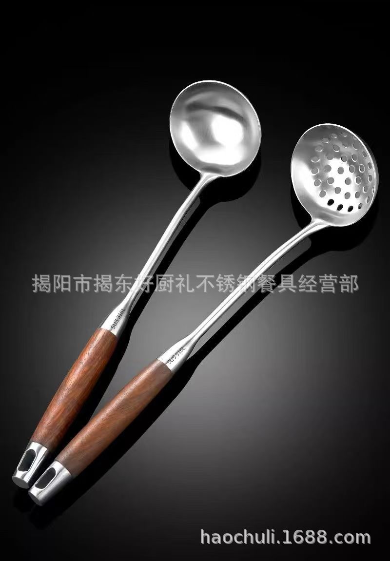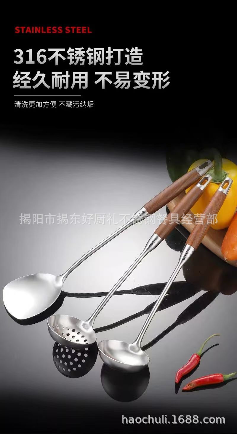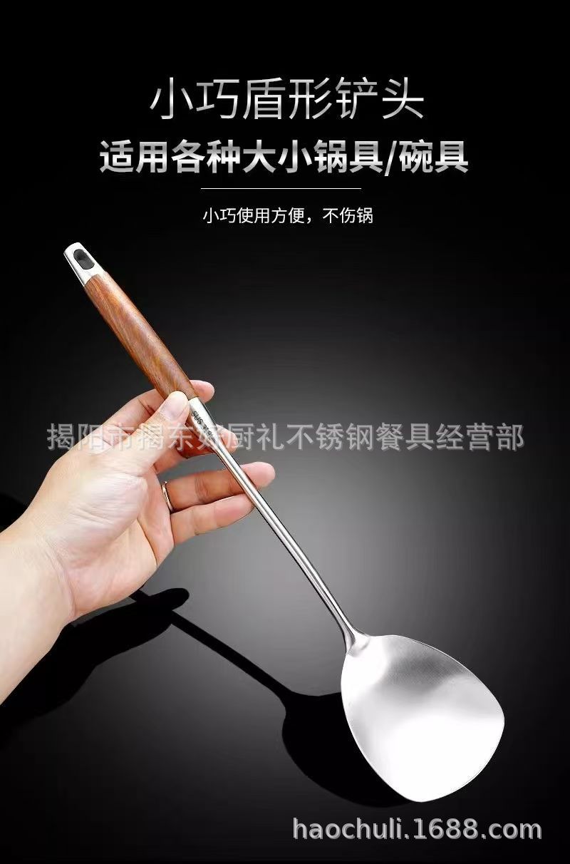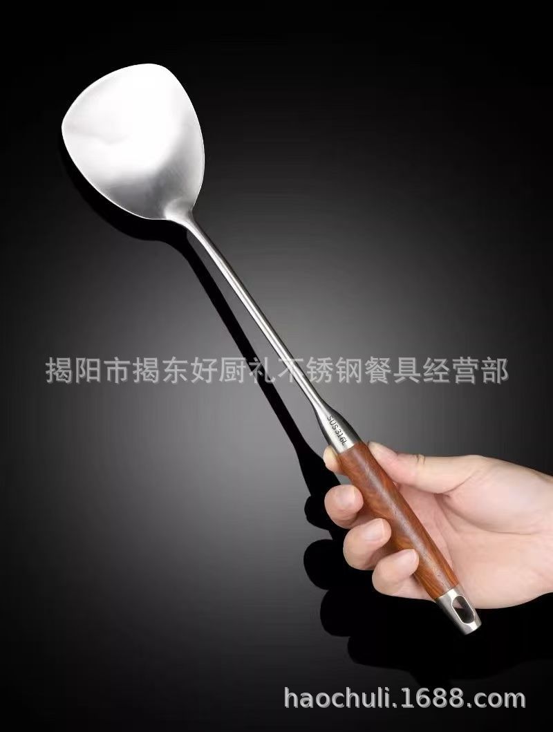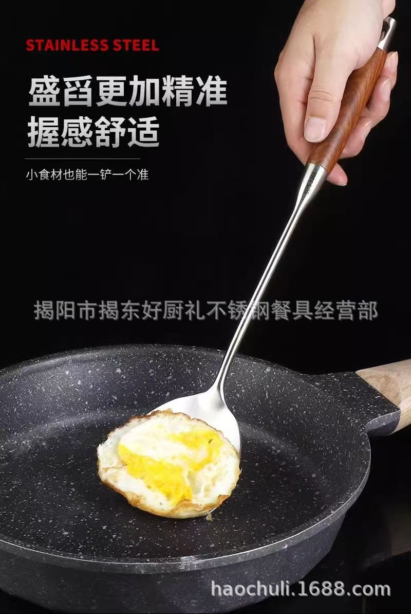 316 스테인레스 스틸 작은 주걱 미니 튀김 주걱 주방 가정용 끓는 나무 손잡이 기숙사 야외 짧은 볶음 철 주걱