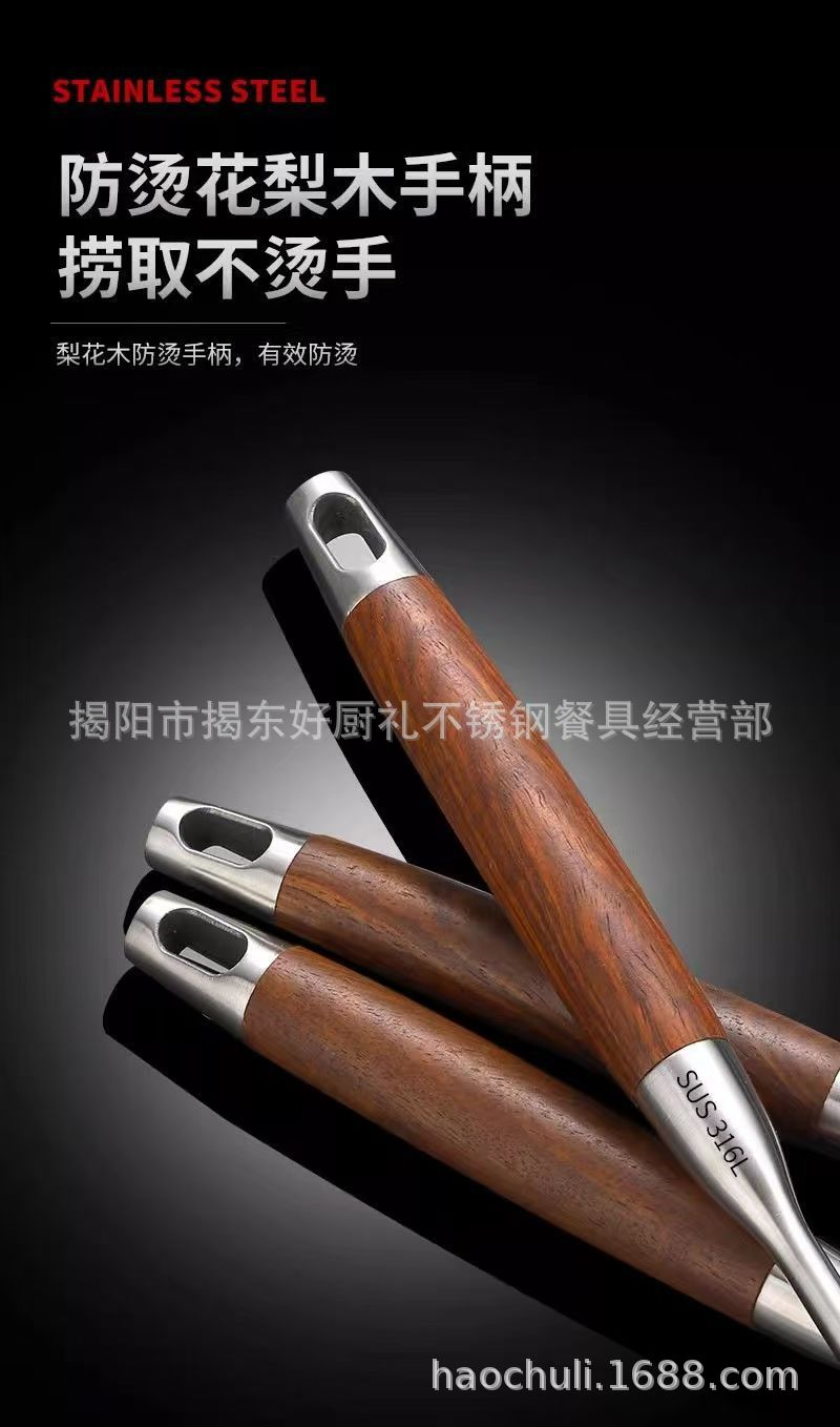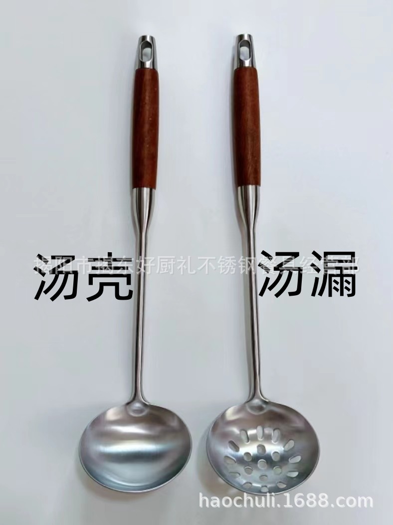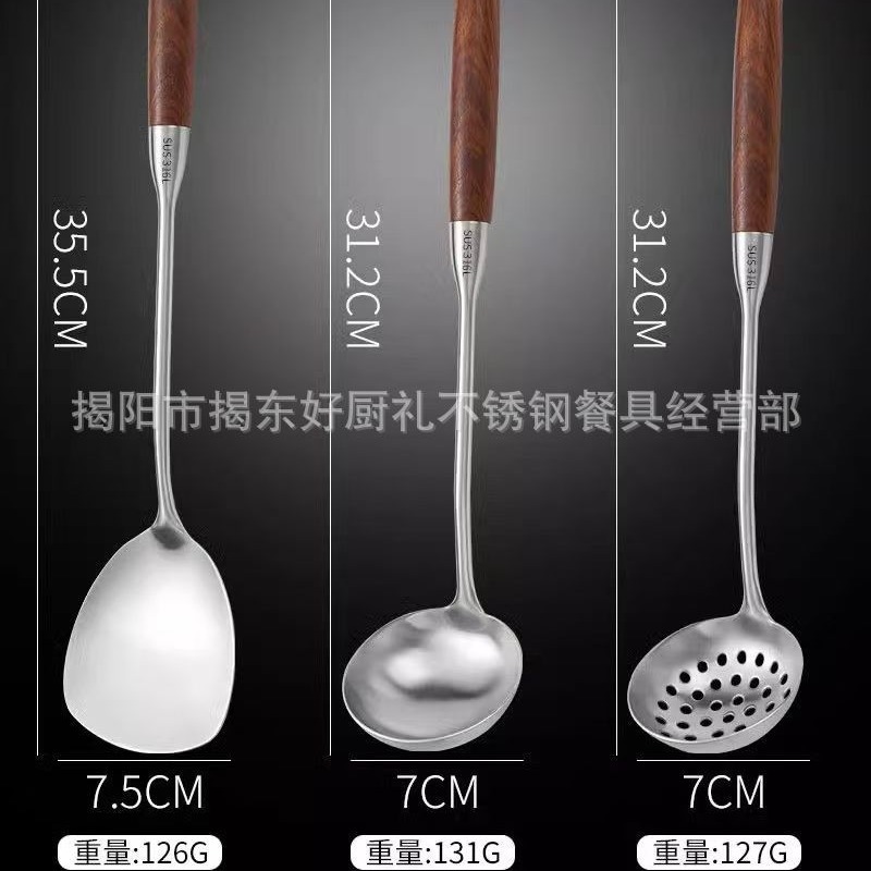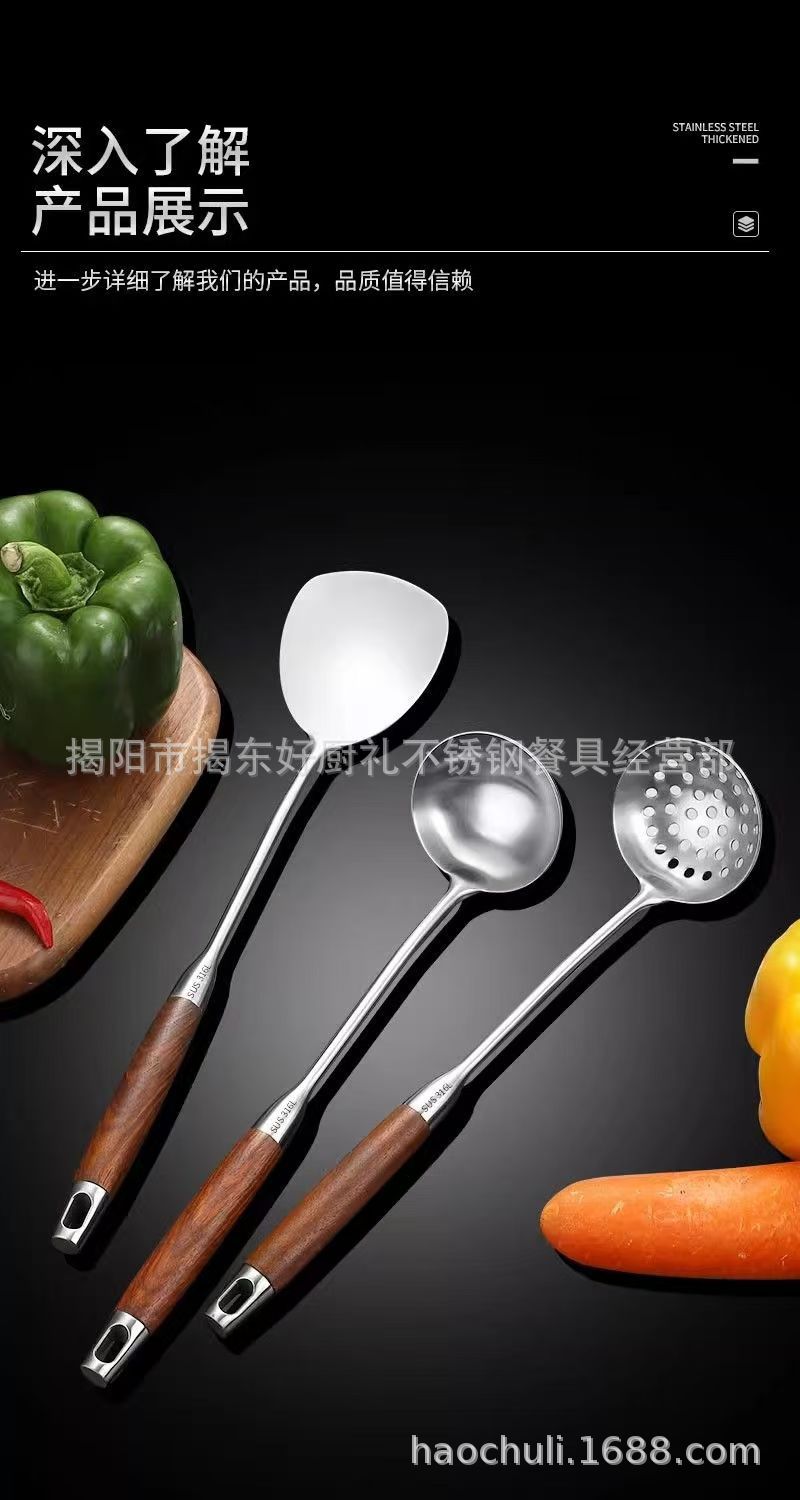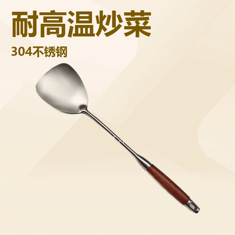 316 스테인레스 스틸 작은 주걱 미니 튀김 주걱 주방 가정용 끓는 나무 손잡이 기숙사 야외 짧은 볶음 철 주걱