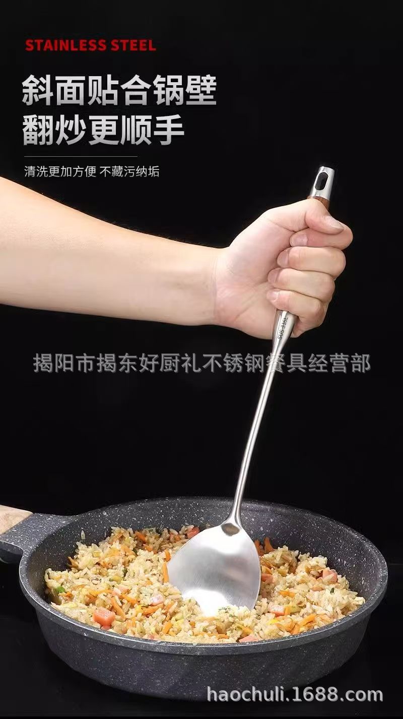 316 스테인레스 스틸 작은 주걱 미니 튀김 주걱 주방 가정용 끓는 나무 손잡이 기숙사 야외 짧은 볶음 철 주걱스토어 가기