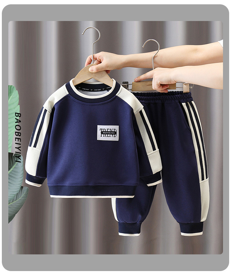 6314 소년 가을 의류 세트 2025 새로운 가을 어린이 컬러 블록 스웨트 투피스 세트 봄, 가을 잘 생긴 스포츠웨어스토어 가기