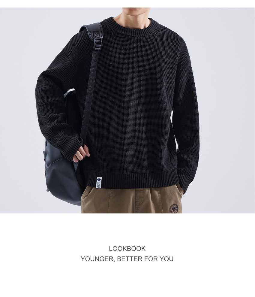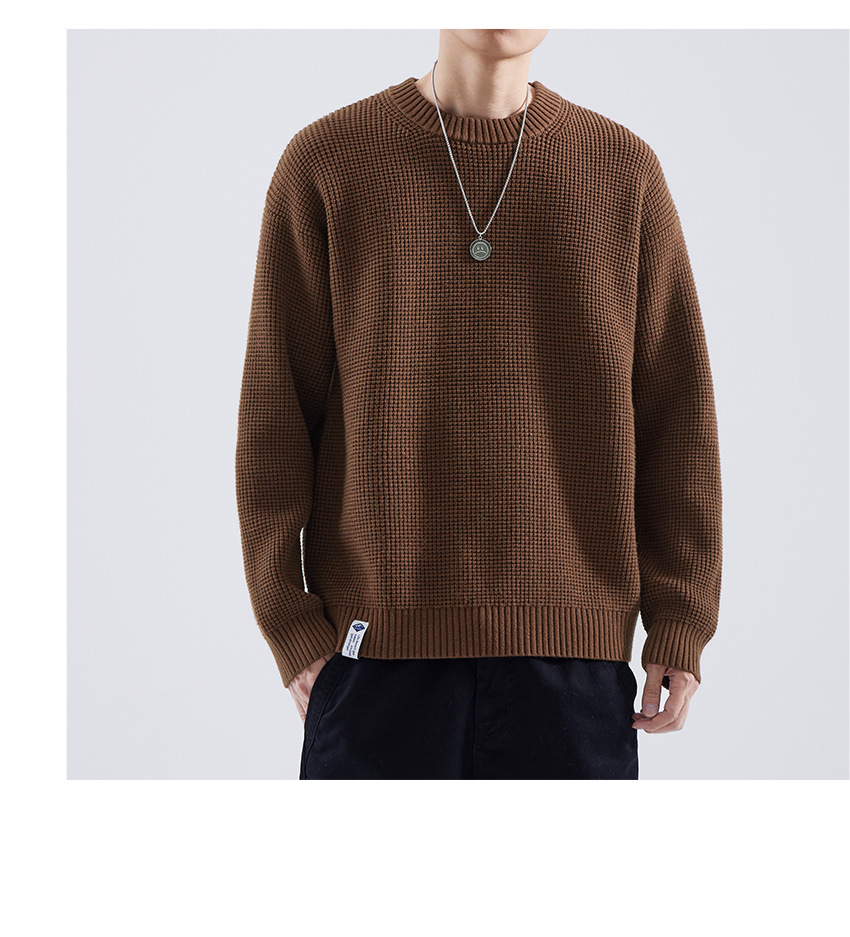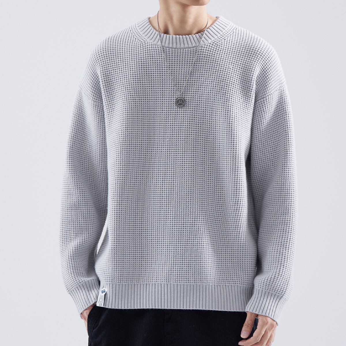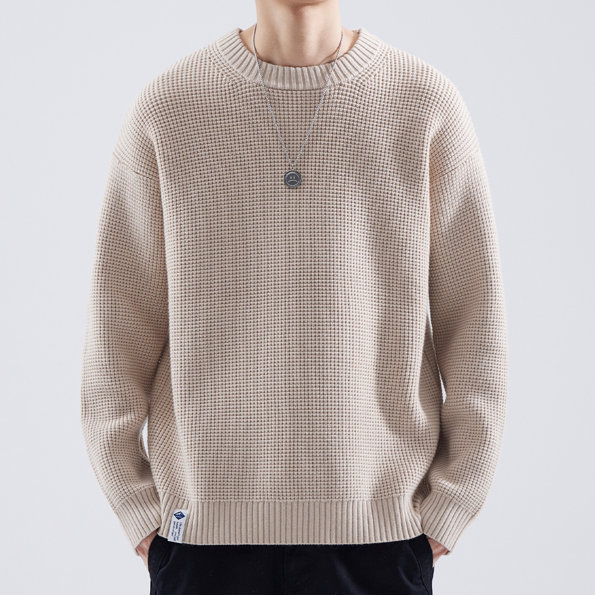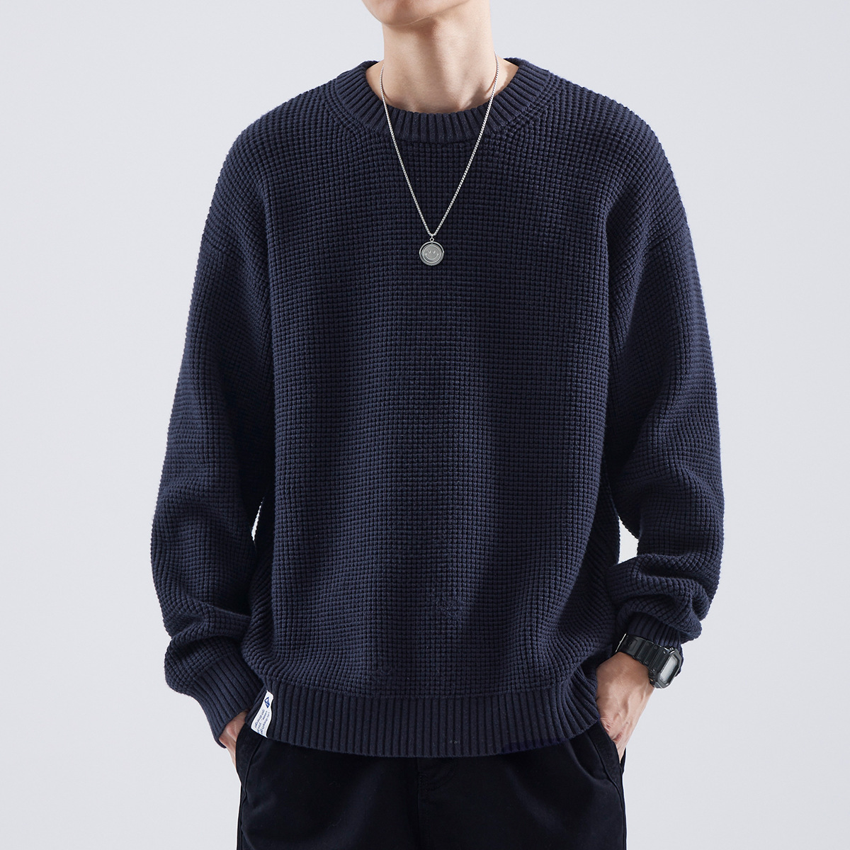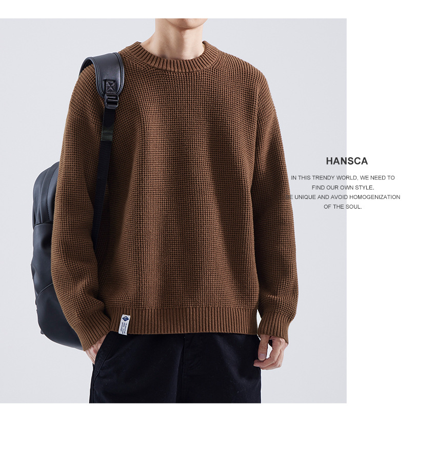 Hanska 게으른 스타일 스웨터 남자의 가을과 겨울 새로운 느슨한 솔리드 컬러 라운드 넥 풀오버 내부 니트 스웨터 재킷스토어 가기